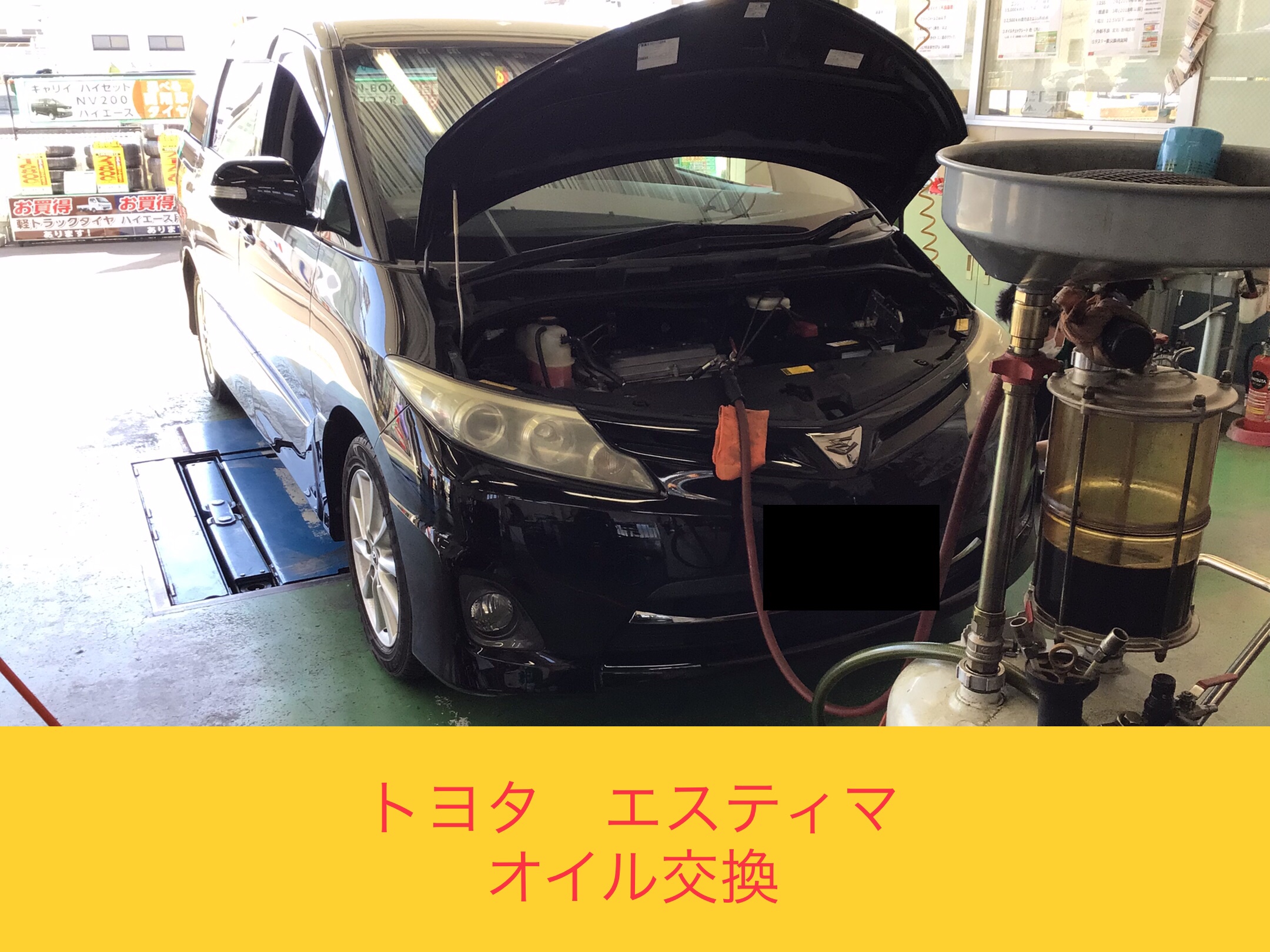 トヨタ『エスティマ』でオイル交換を実施中です!