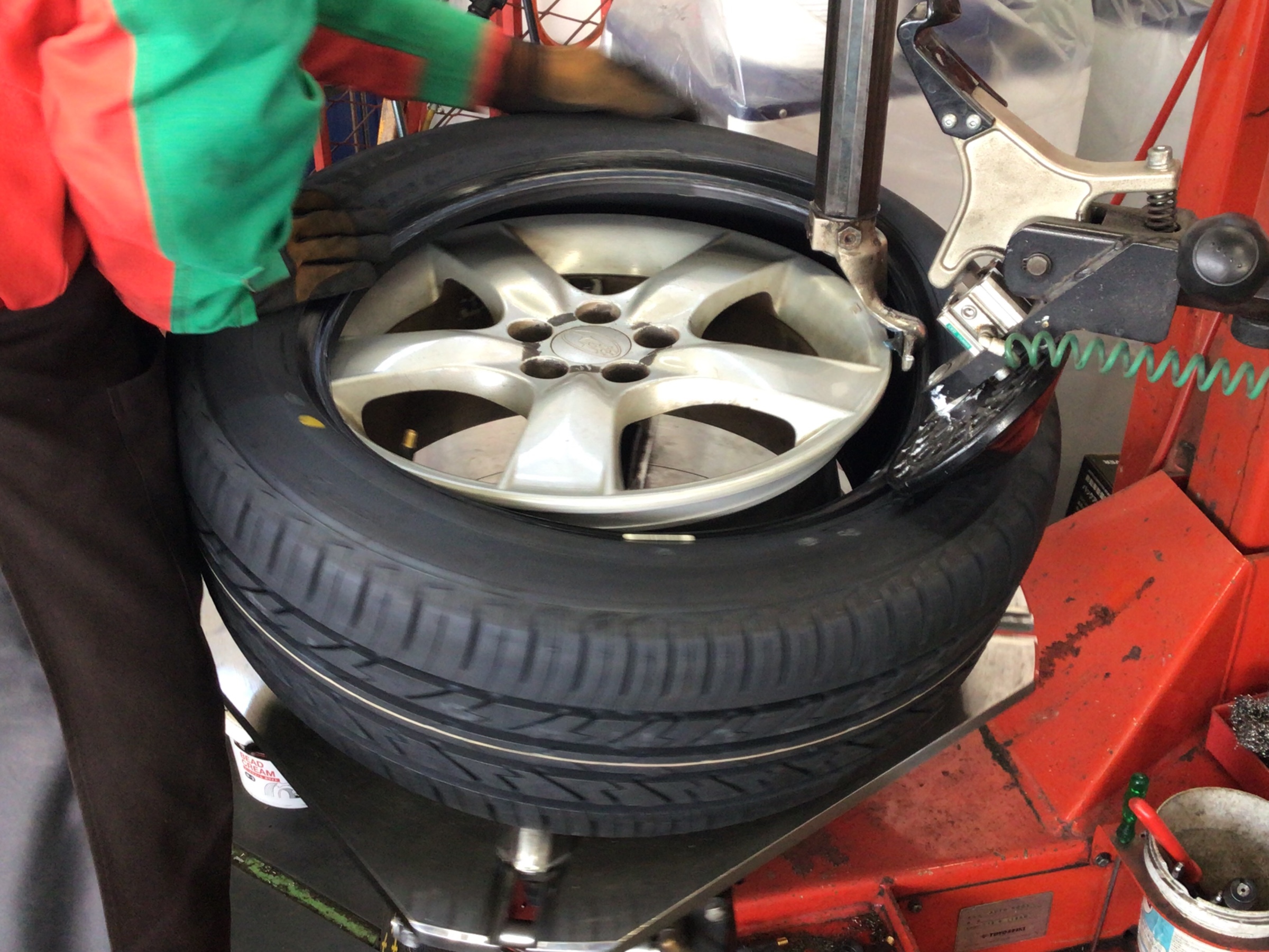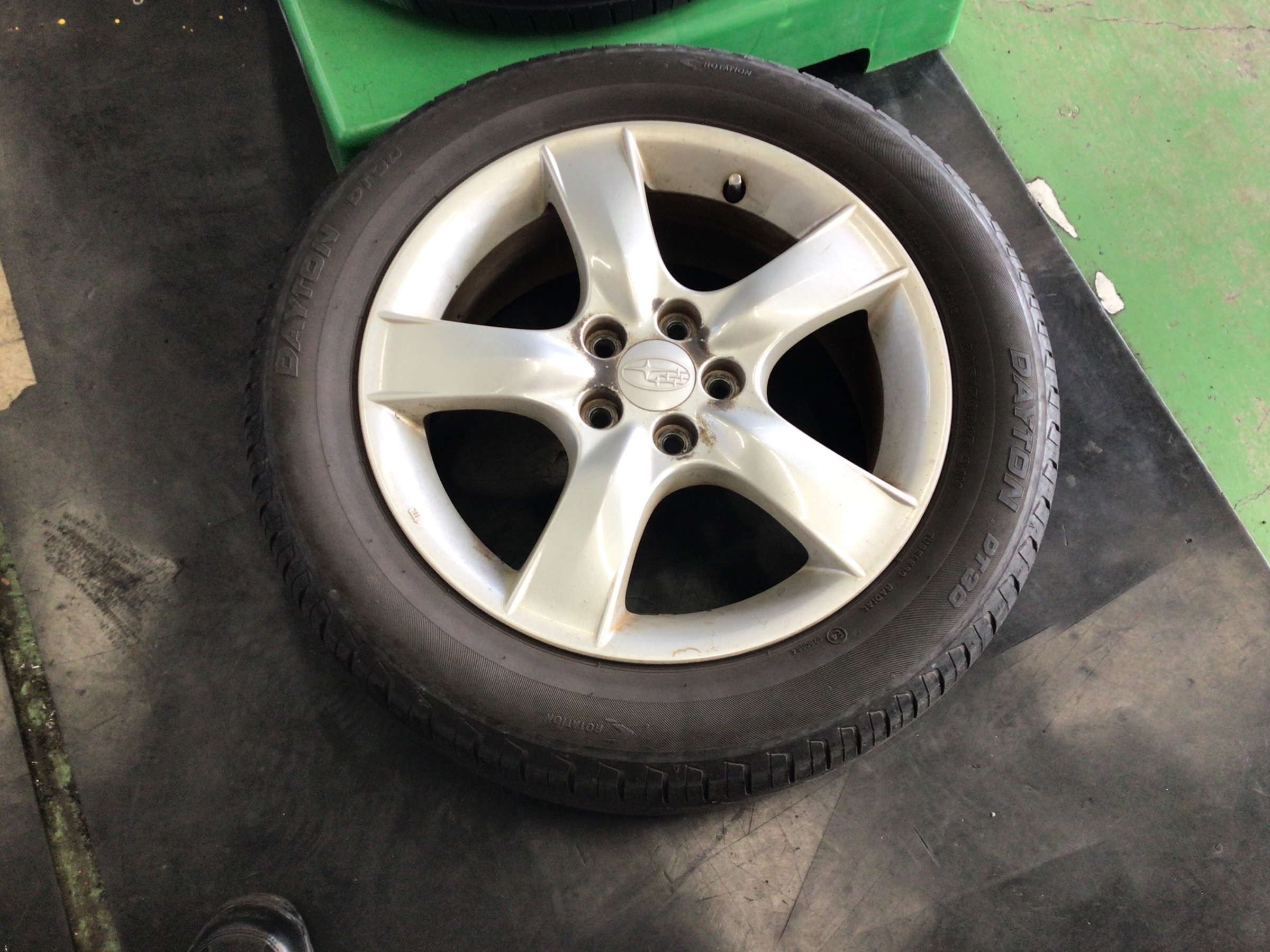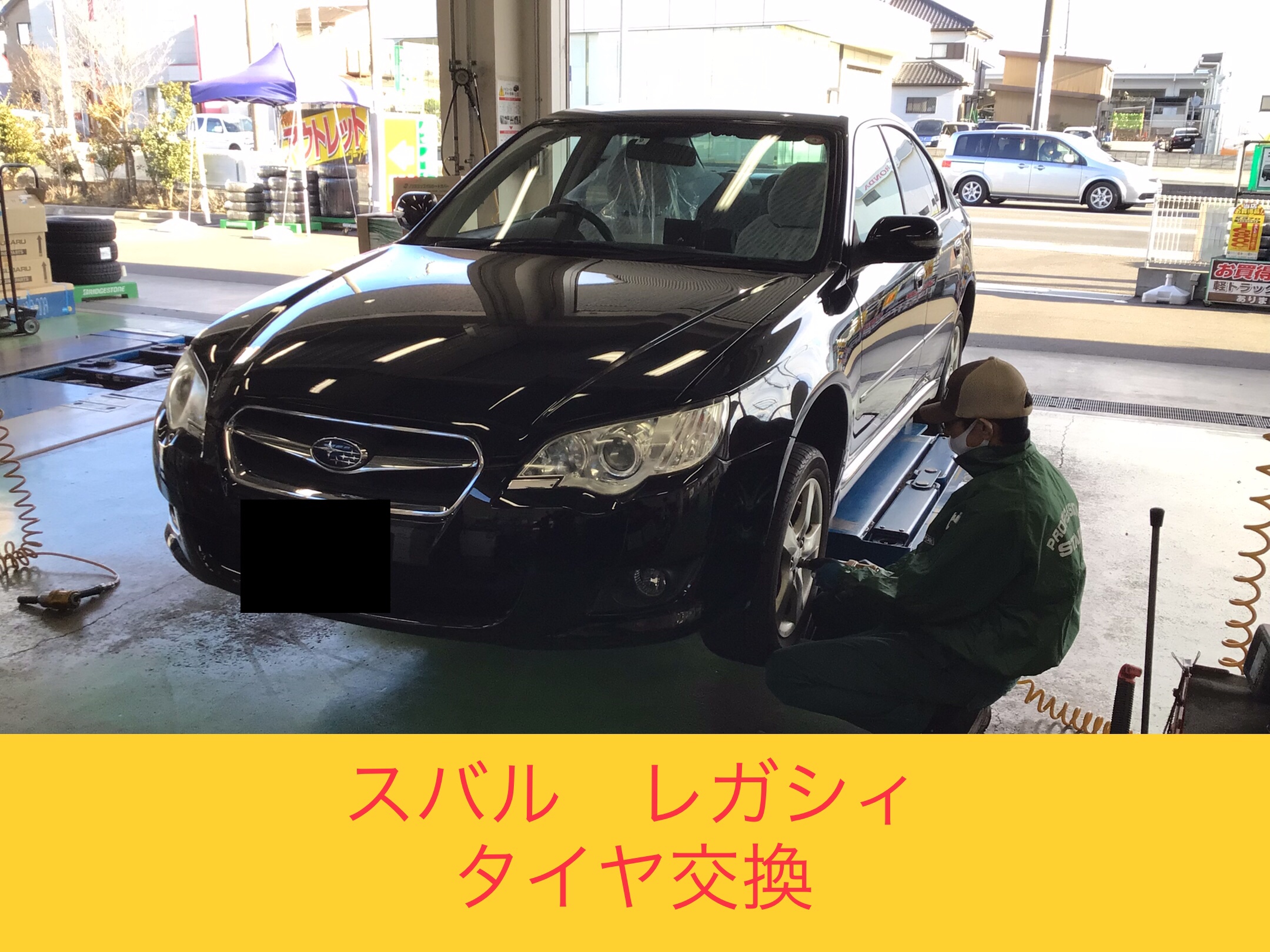 スバル『レガシィ』で、タイヤ交換を実施中です!