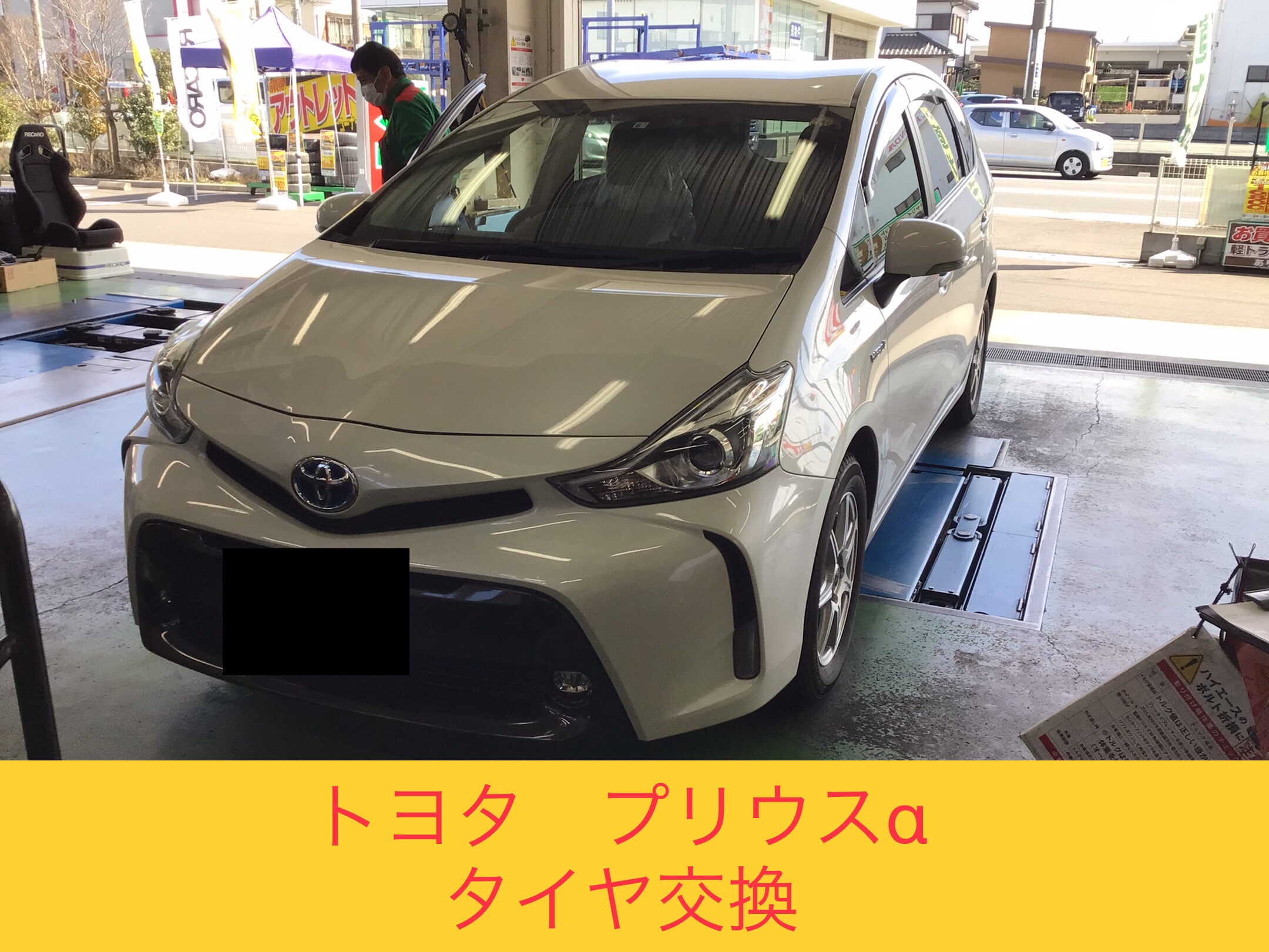 トヨタ『プリウスアルファ』で、タイヤ交換を実施中です!