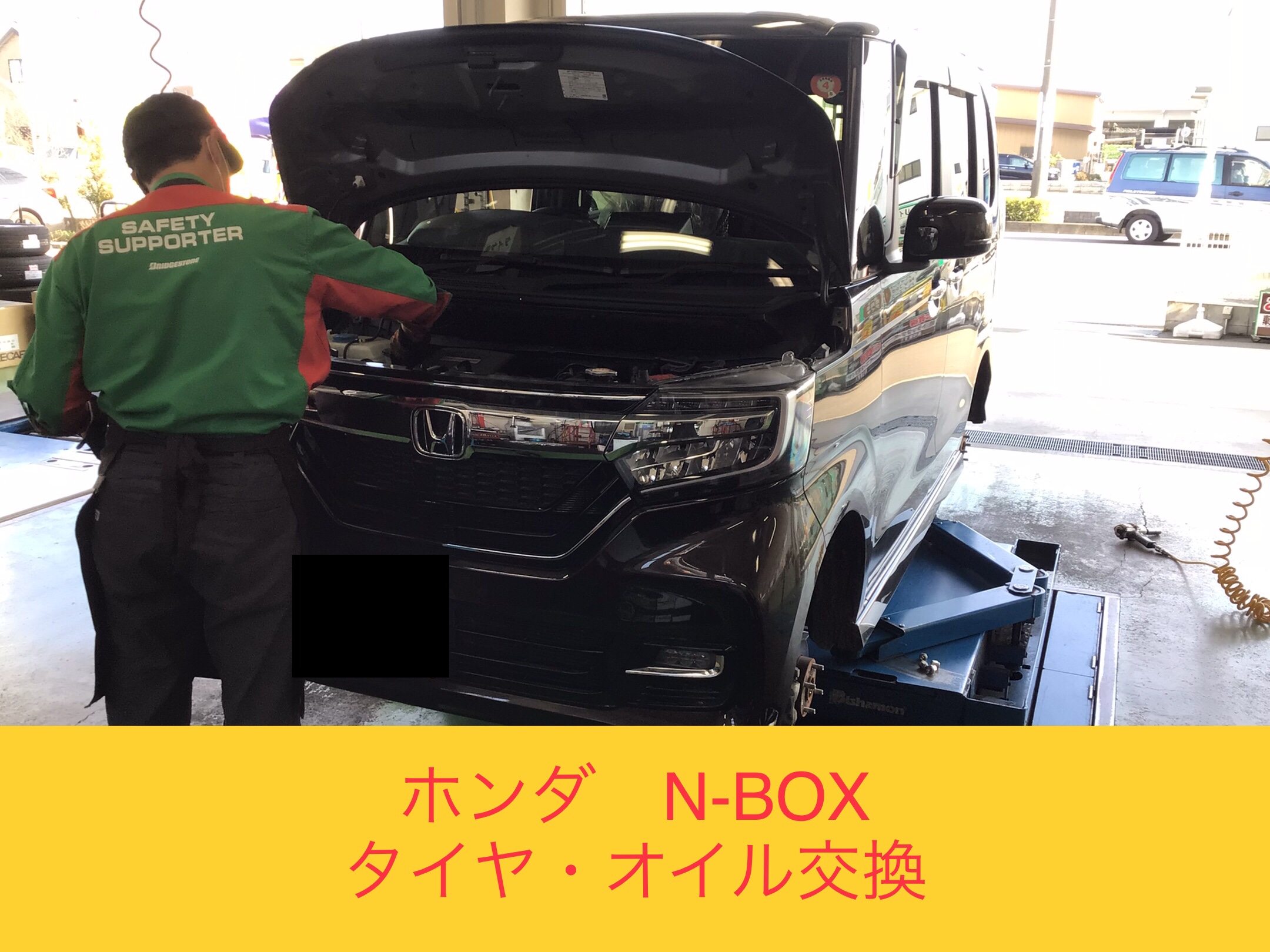 ホンダ『N-BOX』で、タイヤ・オイル交換を実施中です!