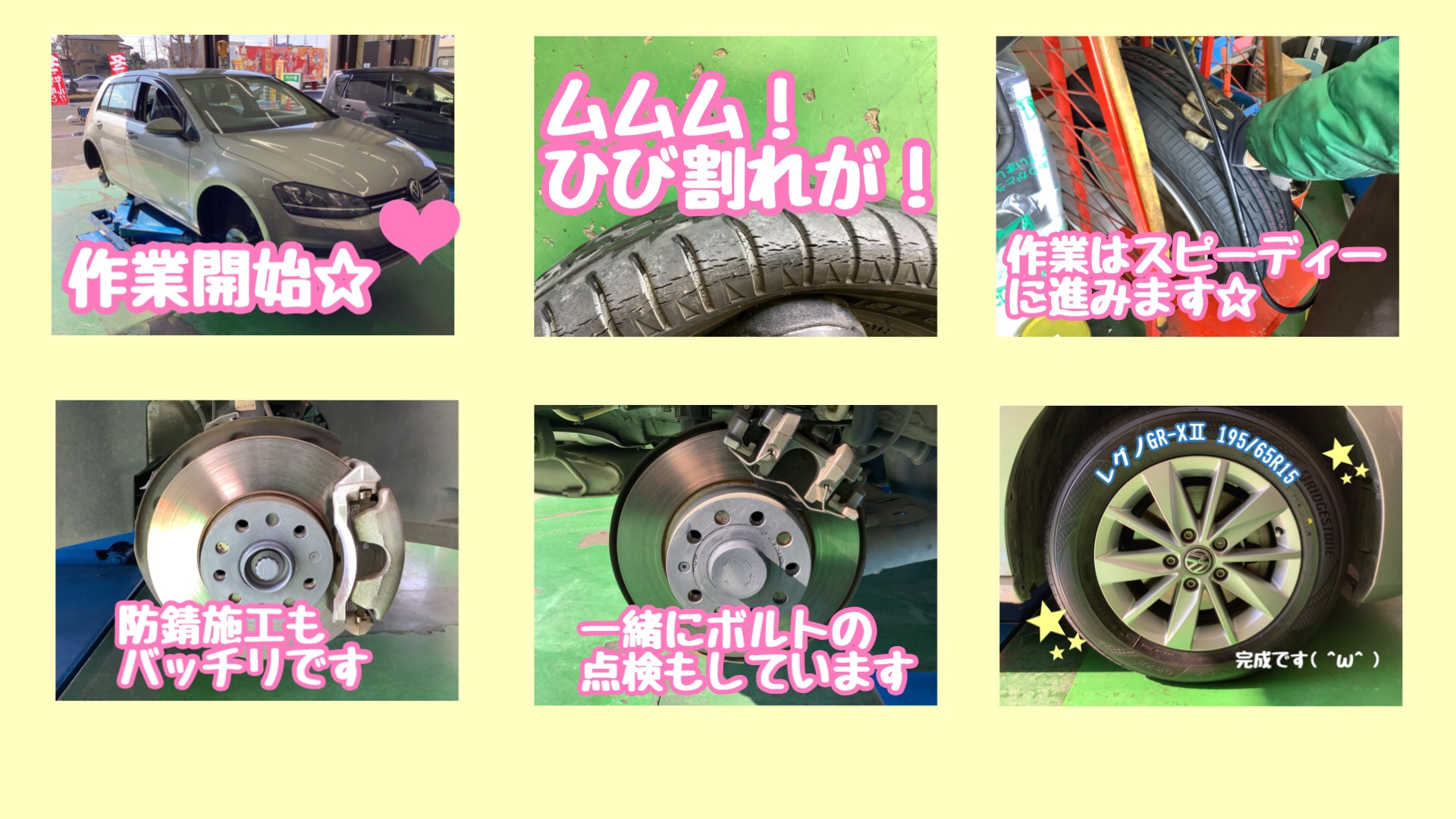 フォルクスワーゲン『ゴルフ』で、タイヤ交換を実施中です!