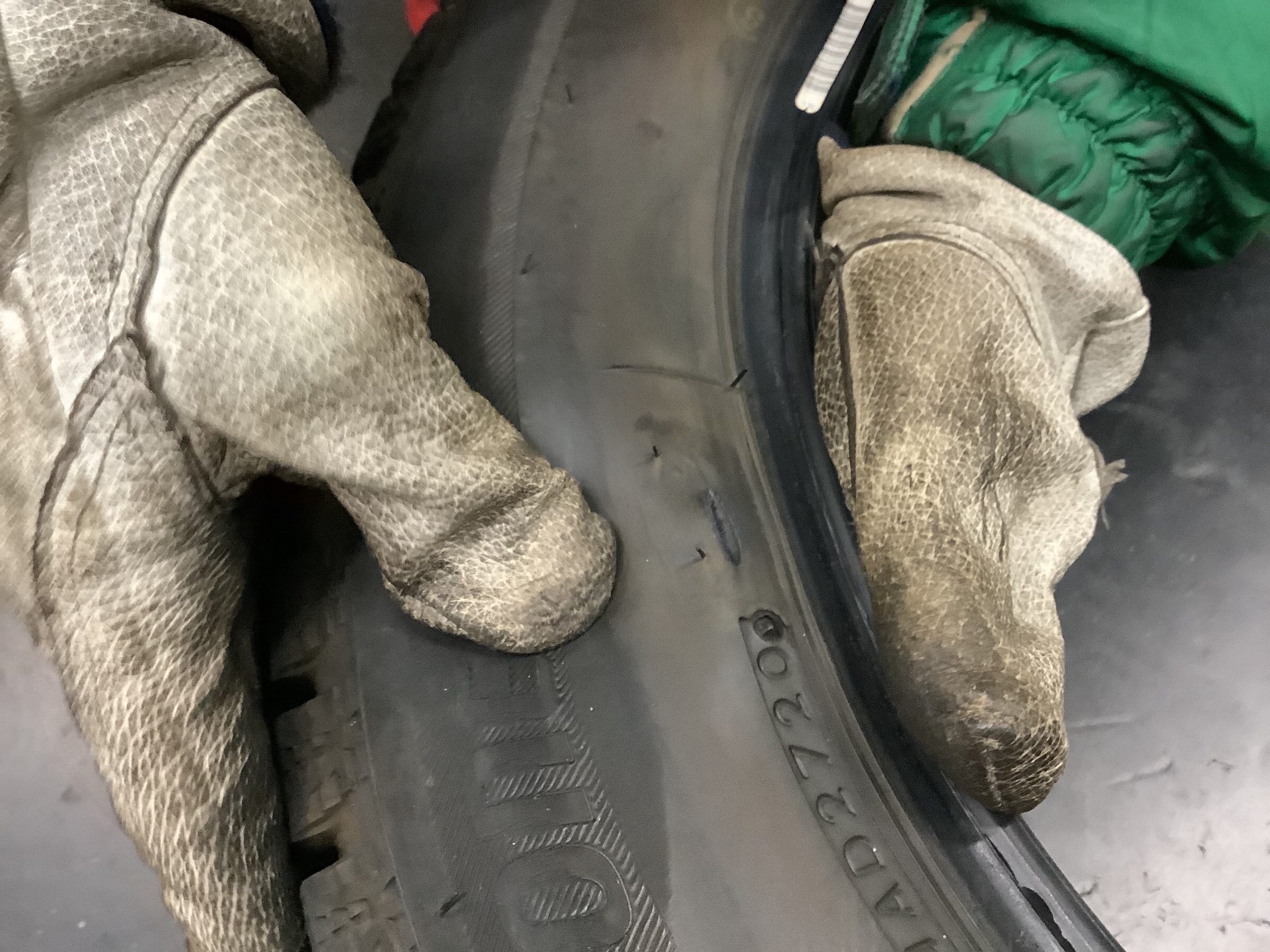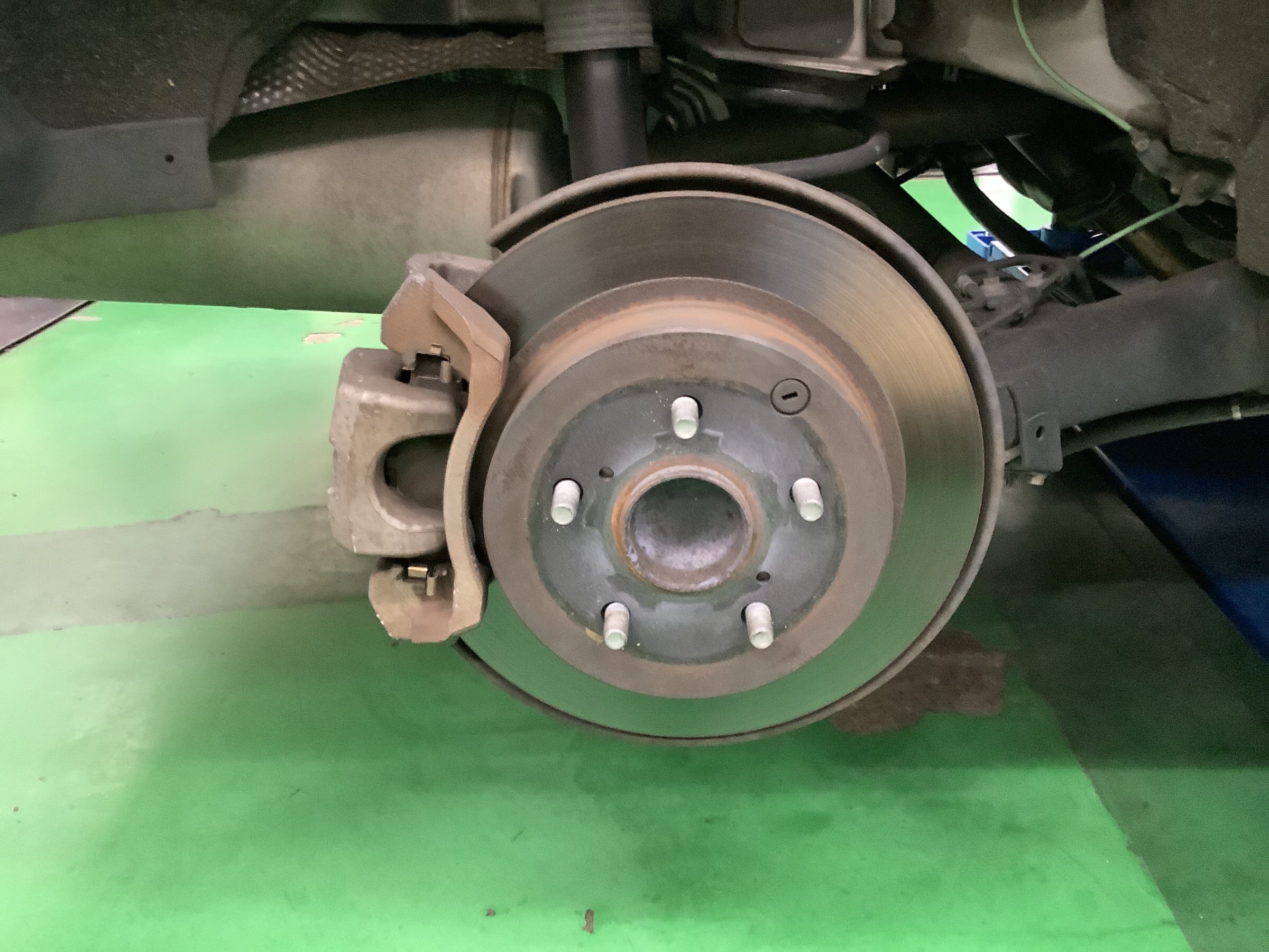 トヨタ『プリウスα』で、パンクしたタイヤの交換を実施中です!