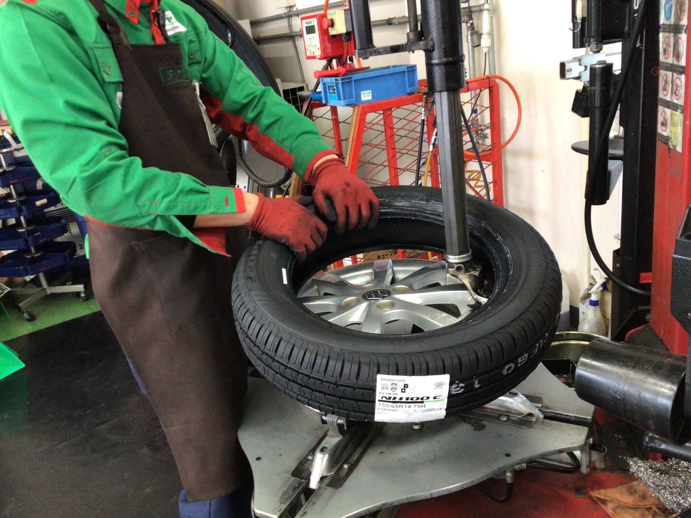 スズキ『ワゴンR』でタイヤ交換を実施中です!