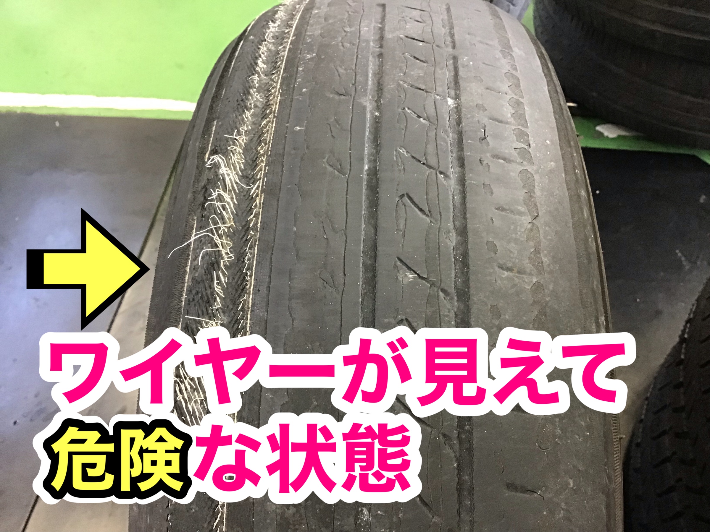 今回のタイヤ交換は、使用中のタイヤのワイヤーが出てしまい危険な状態だったからです。