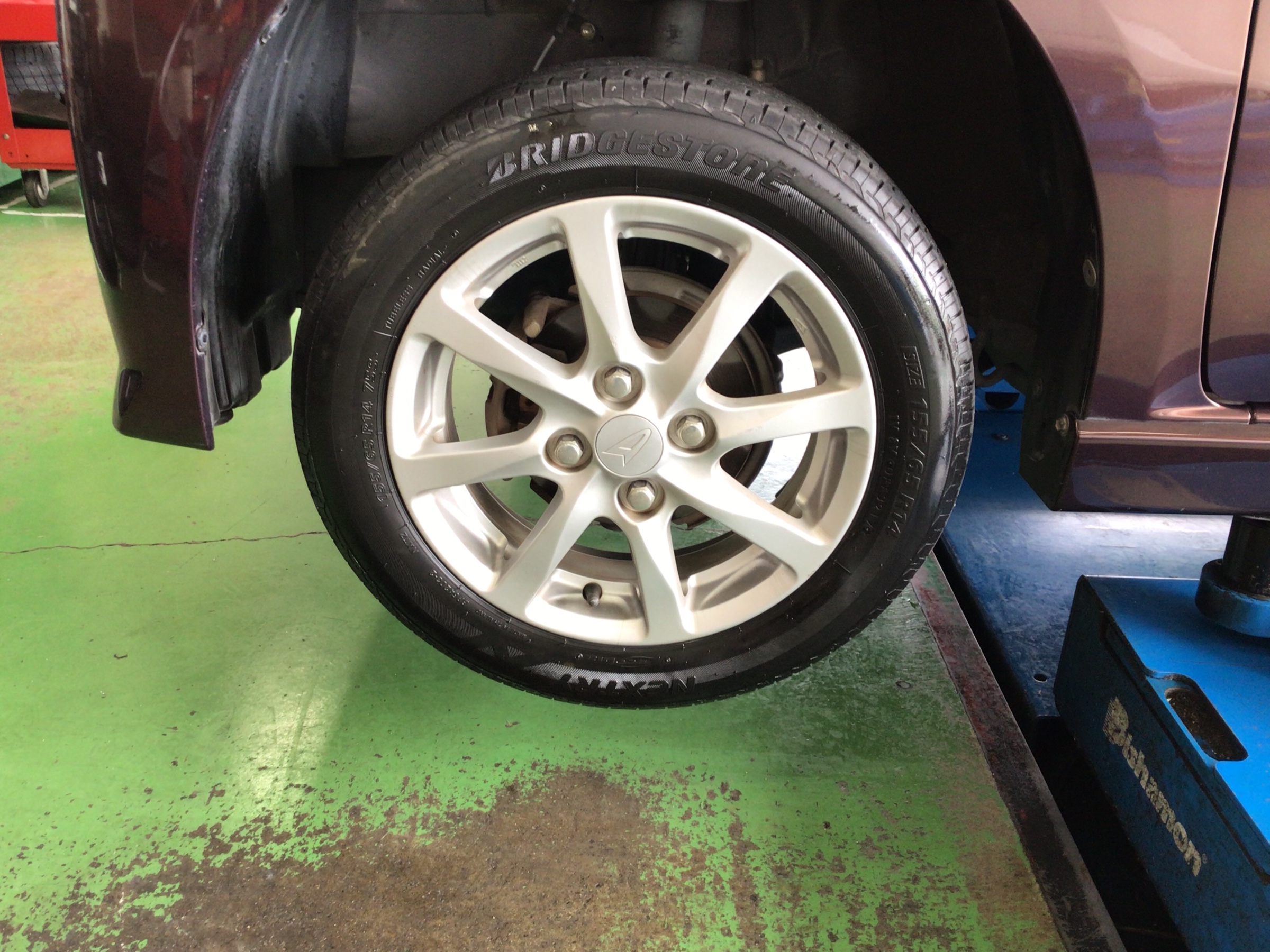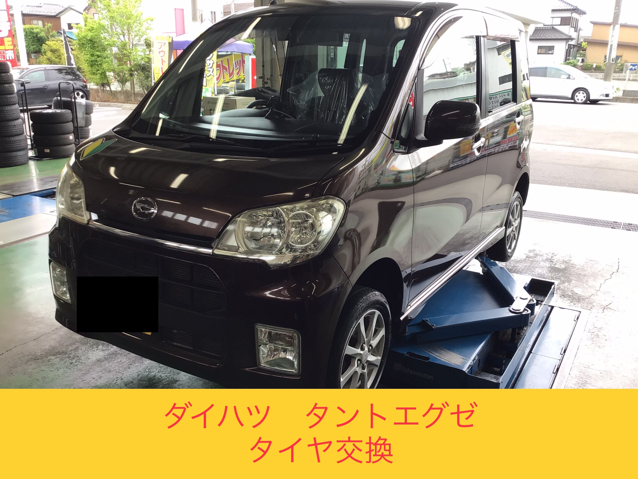 ダイハツの『タントエグゼ』で、タイヤ交換を実施中です!