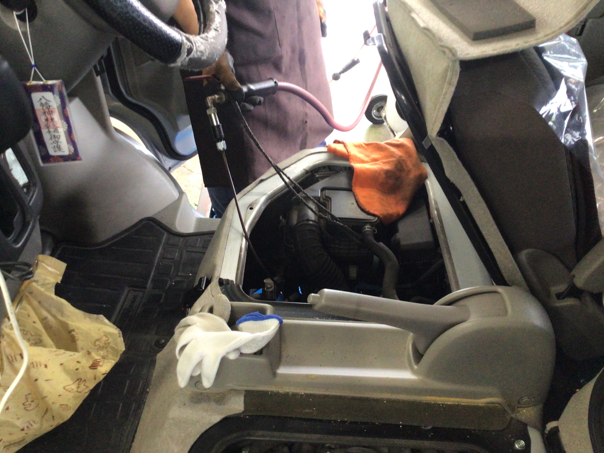 三菱『ミニキャブ』で、オイル交換を実施中です!