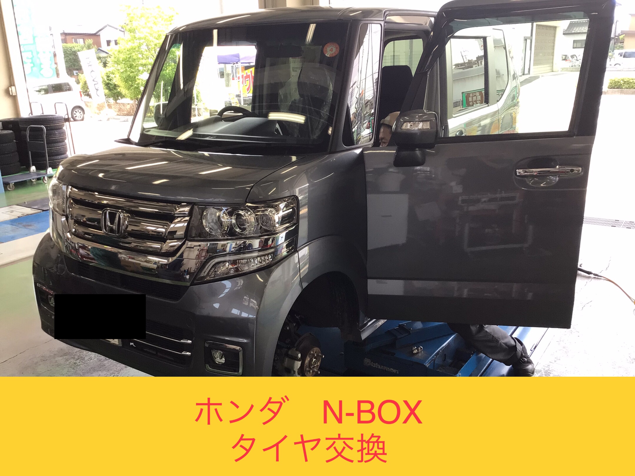 ホンダ『N-BOX』で、タイヤ交換を実施中です!