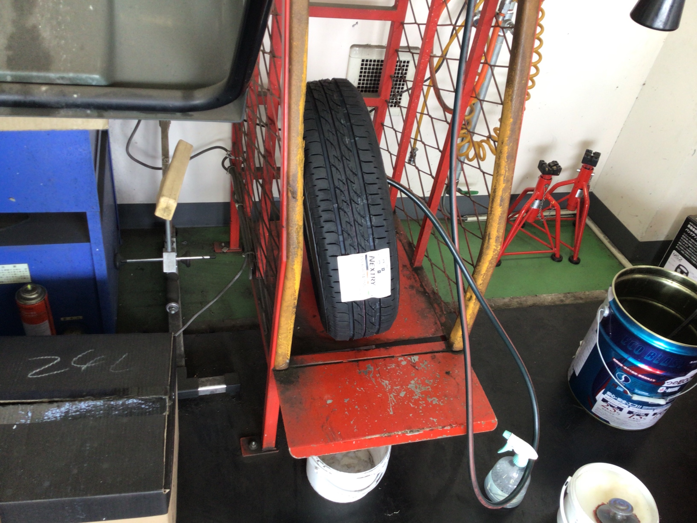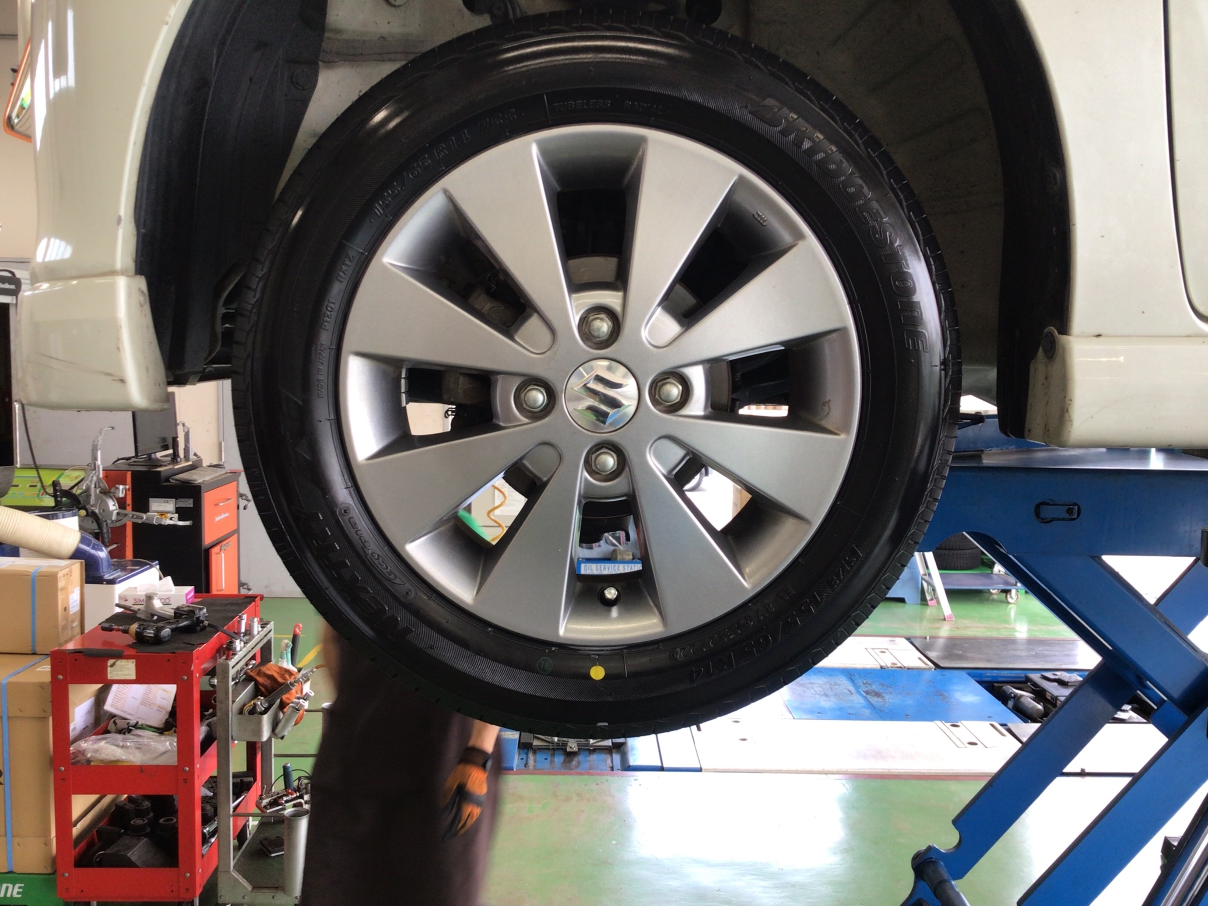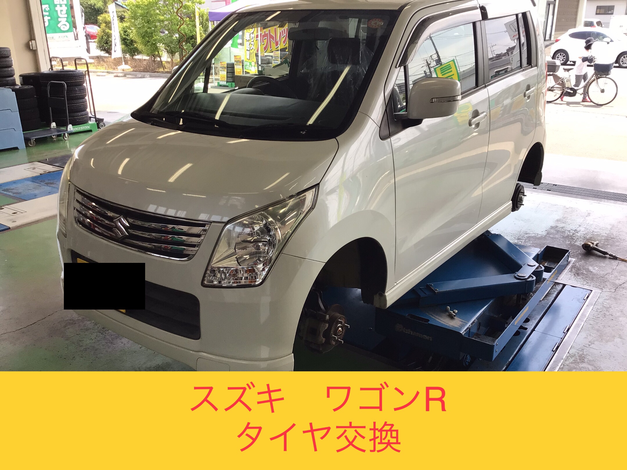 スズキ『ワゴンR』で、タイヤ交換を実施中です!