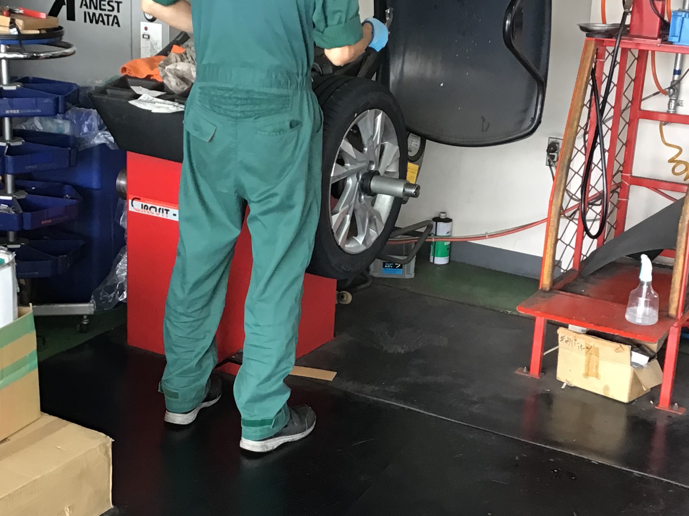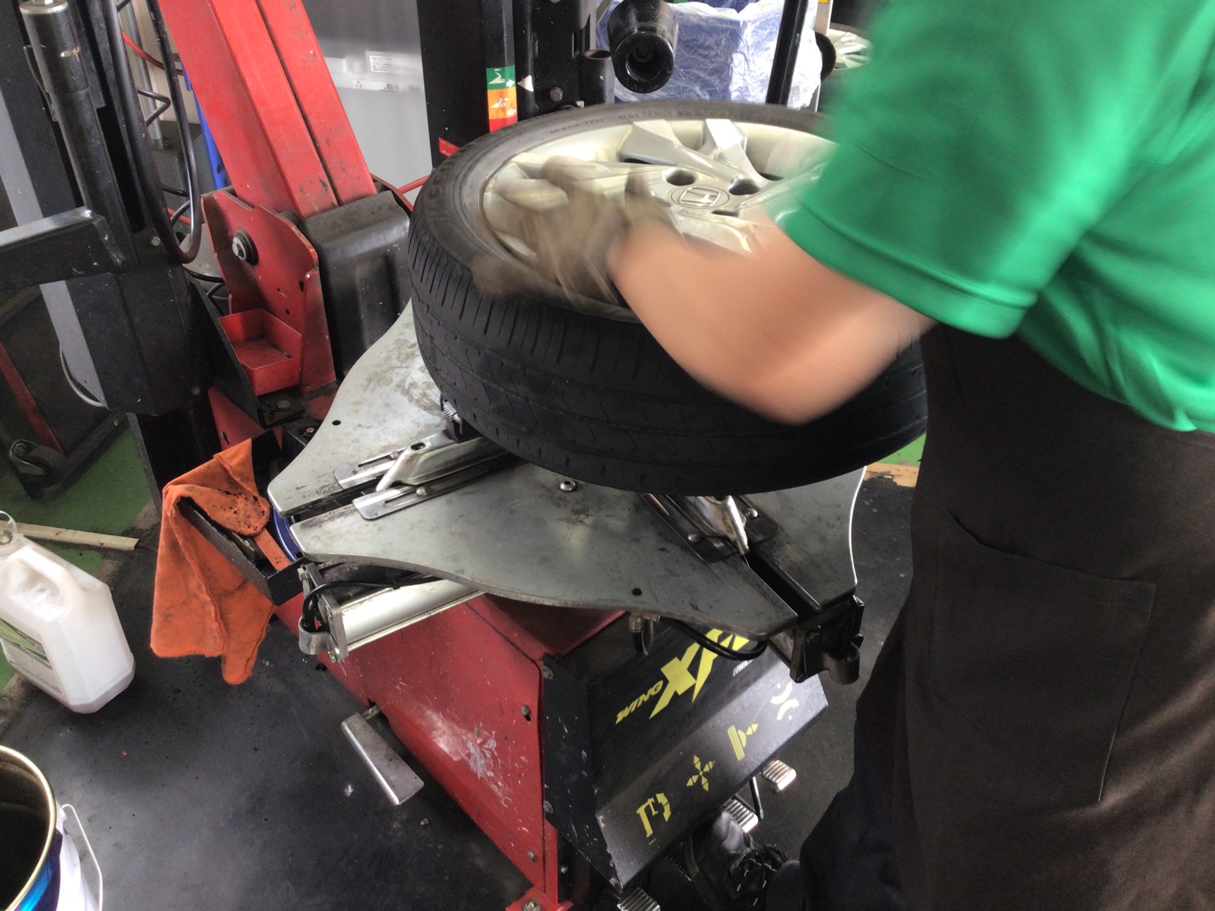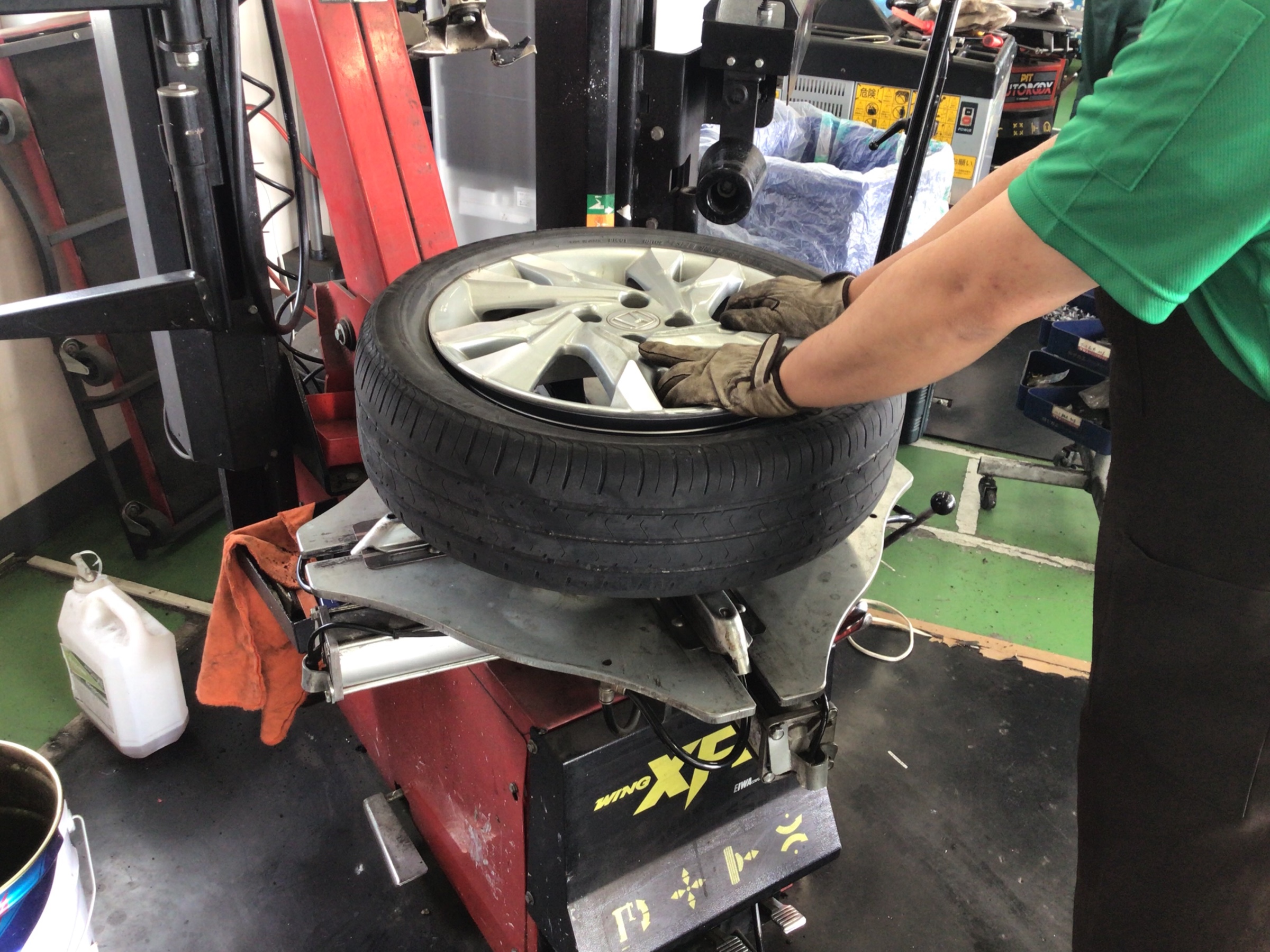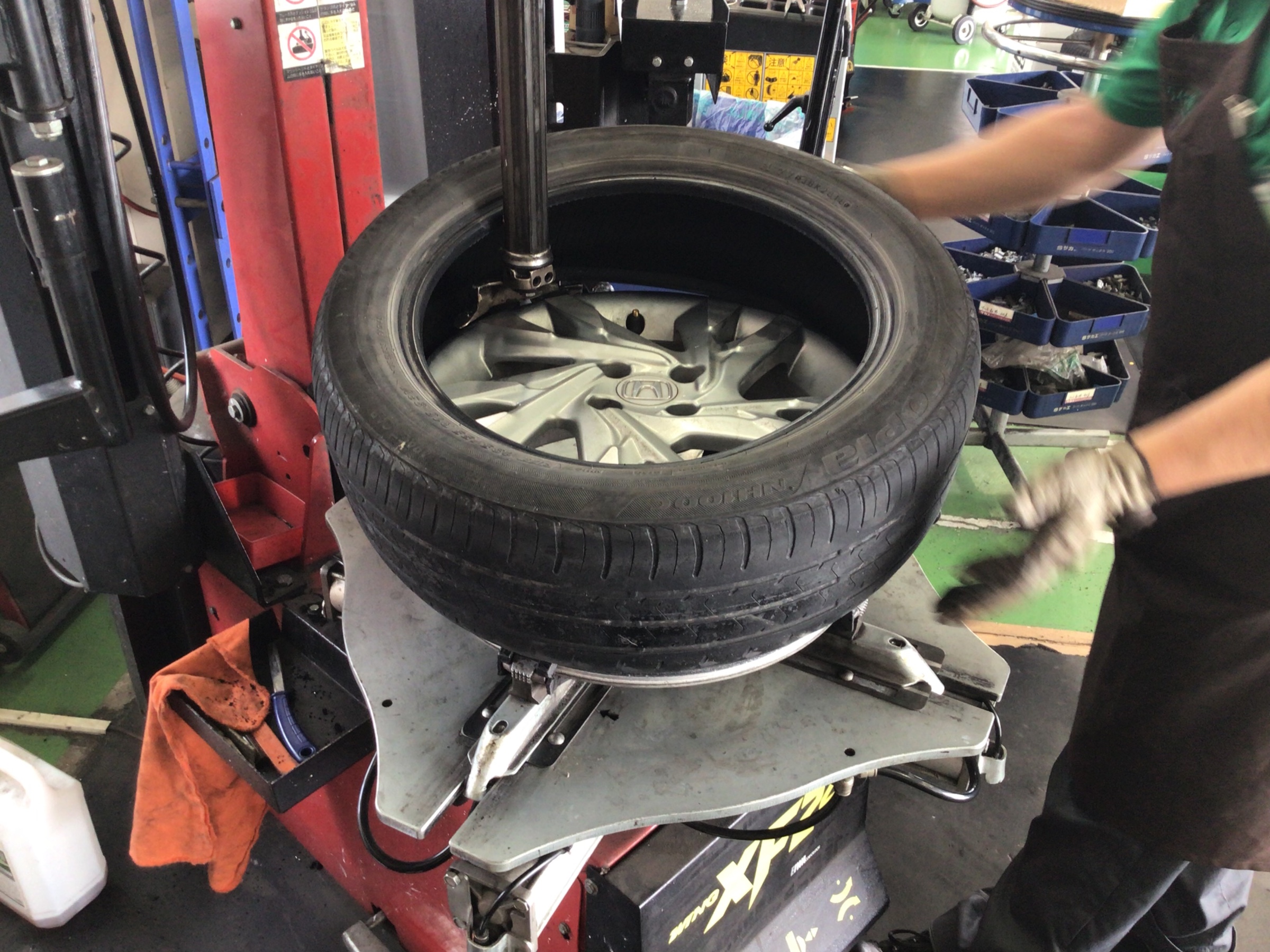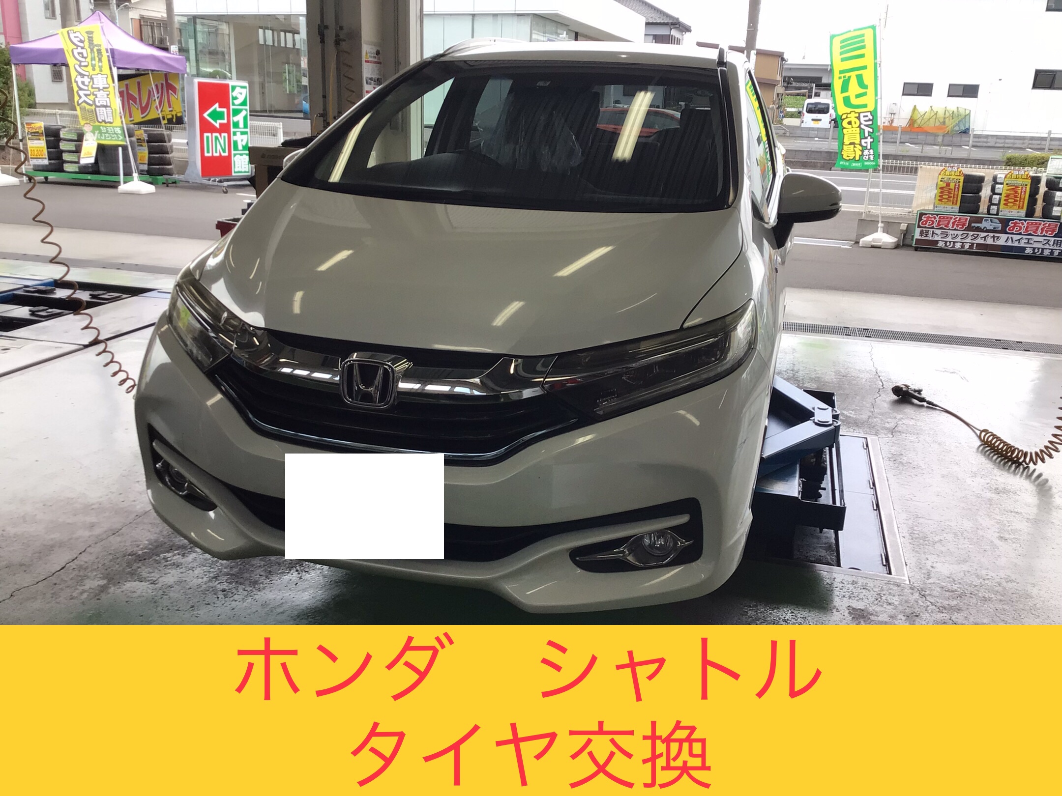 ホンダ『シャトル』で、タイヤ交換を実施中です!