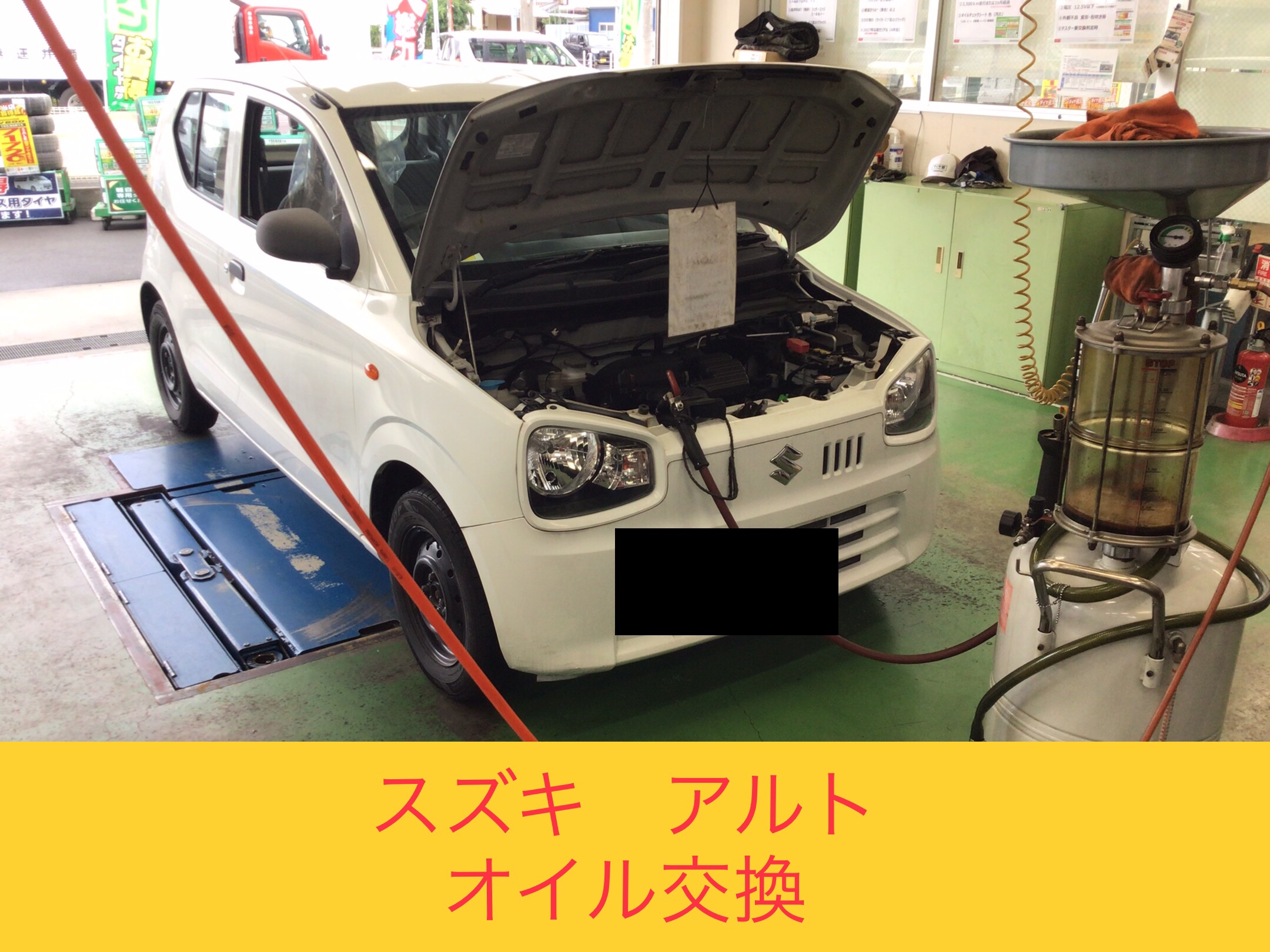 スズキ『アルト』で、オイル交換を実施中です!