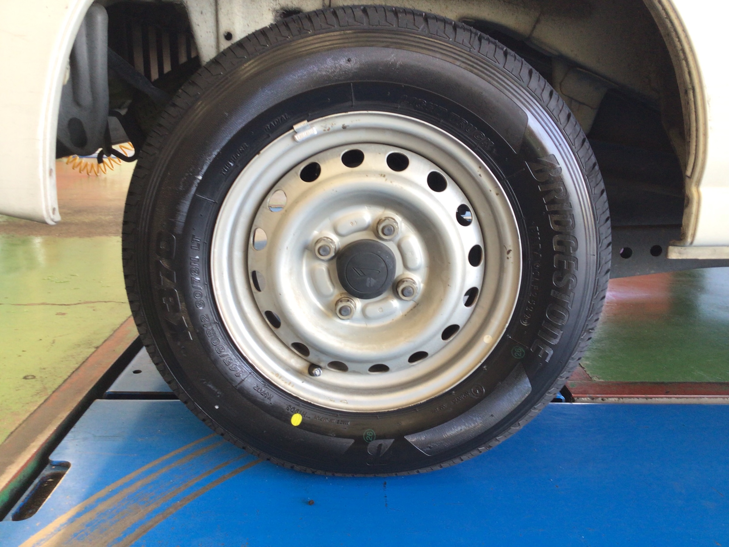 ダイハツ『ハイゼット』で、タイヤ交換を実施中です!