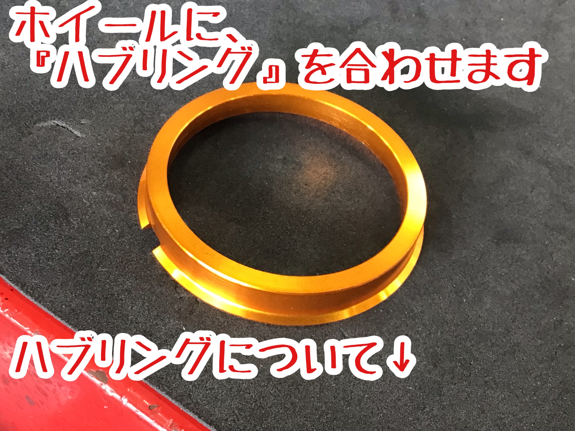 ハブリングとは、ホイール取り付け部のハブに合わせるスペーサーのことです。ハブの中心には円筒形の出っ張りがあり、そこにホイールのセンターホールを合わせるようにして取り付けます。