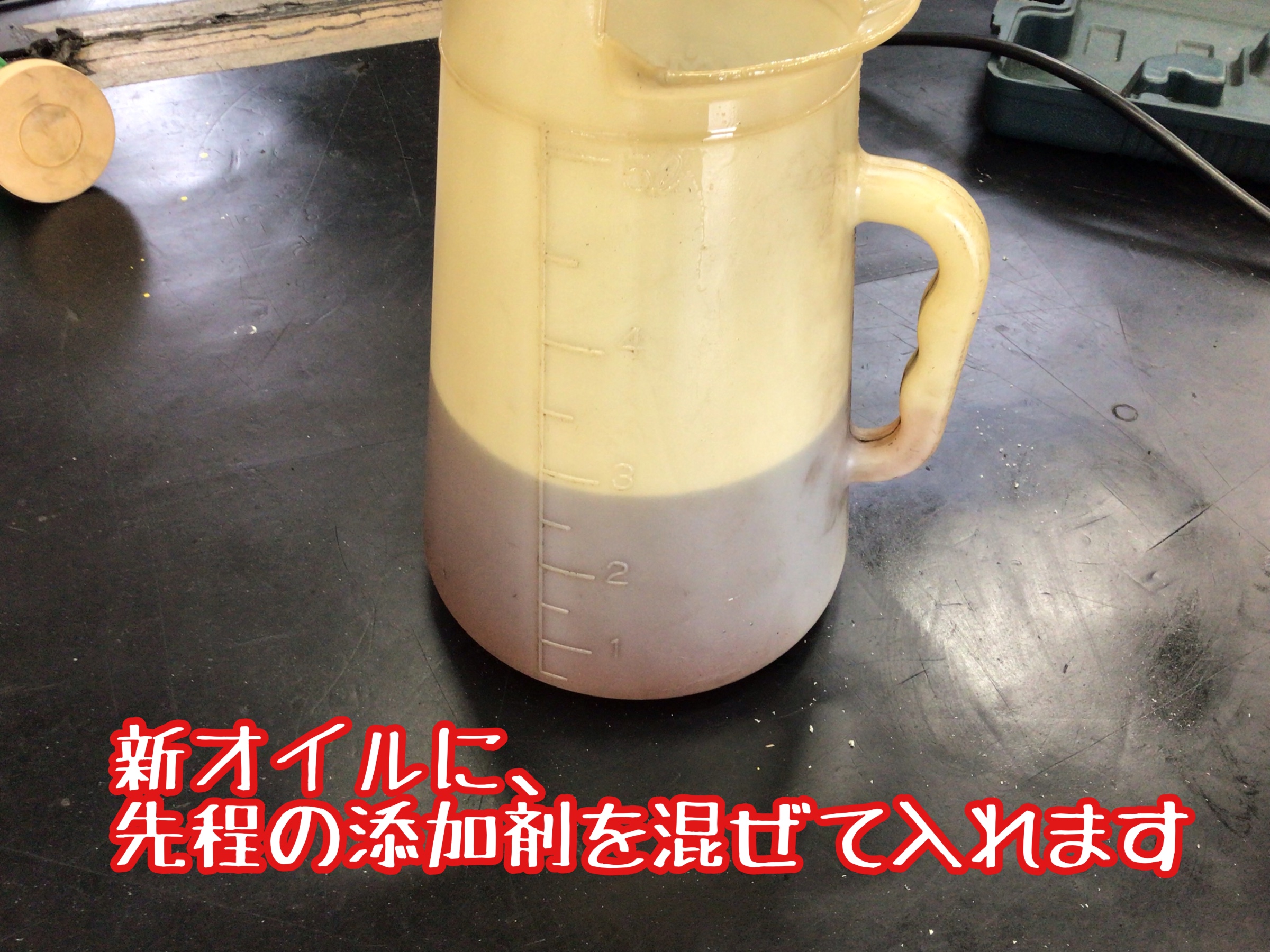 そして、オイル添加剤も入れていきます。