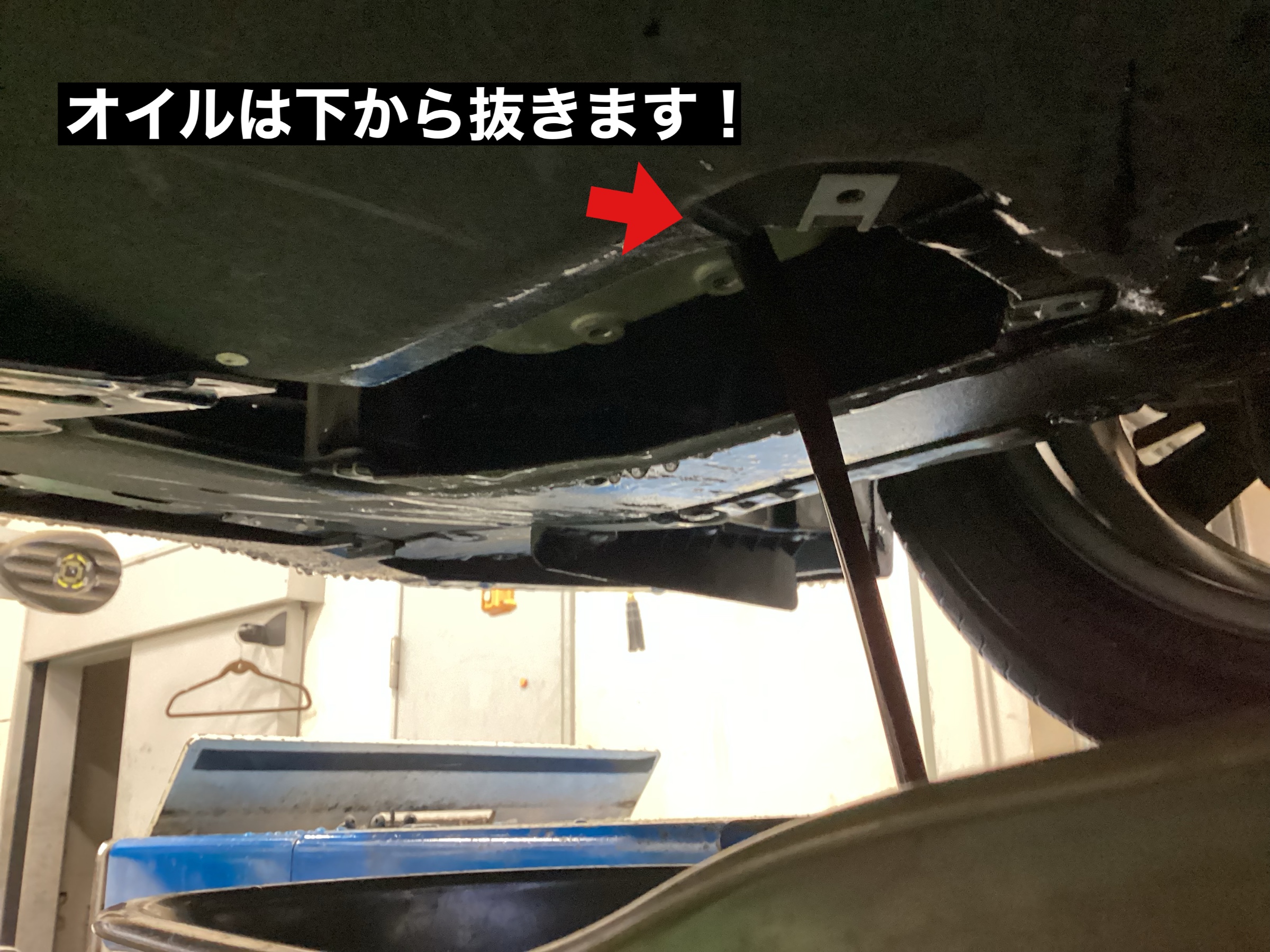 ドレンボルトを外して下からオイル抜きます!