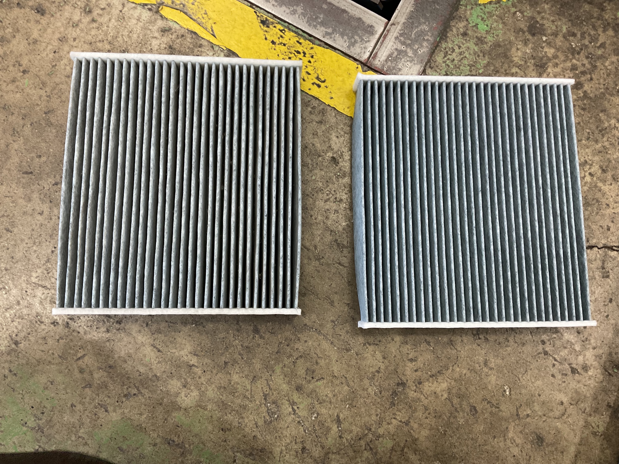 右が新品のエアコンフィルターで、左が使用していたエアコンフィルターになります