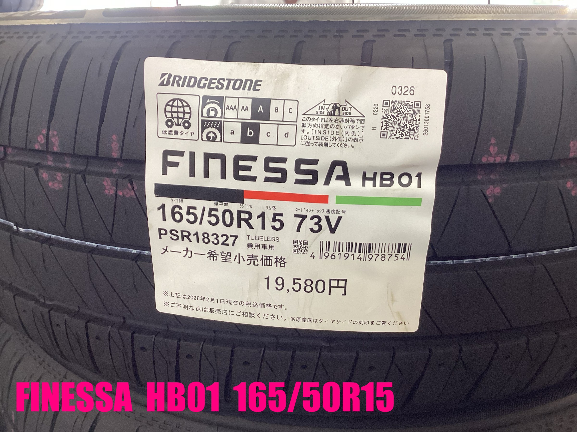 組み合わせるタイヤはブリヂストンFINESSA HB01 165/50R15 2月発売の新商品