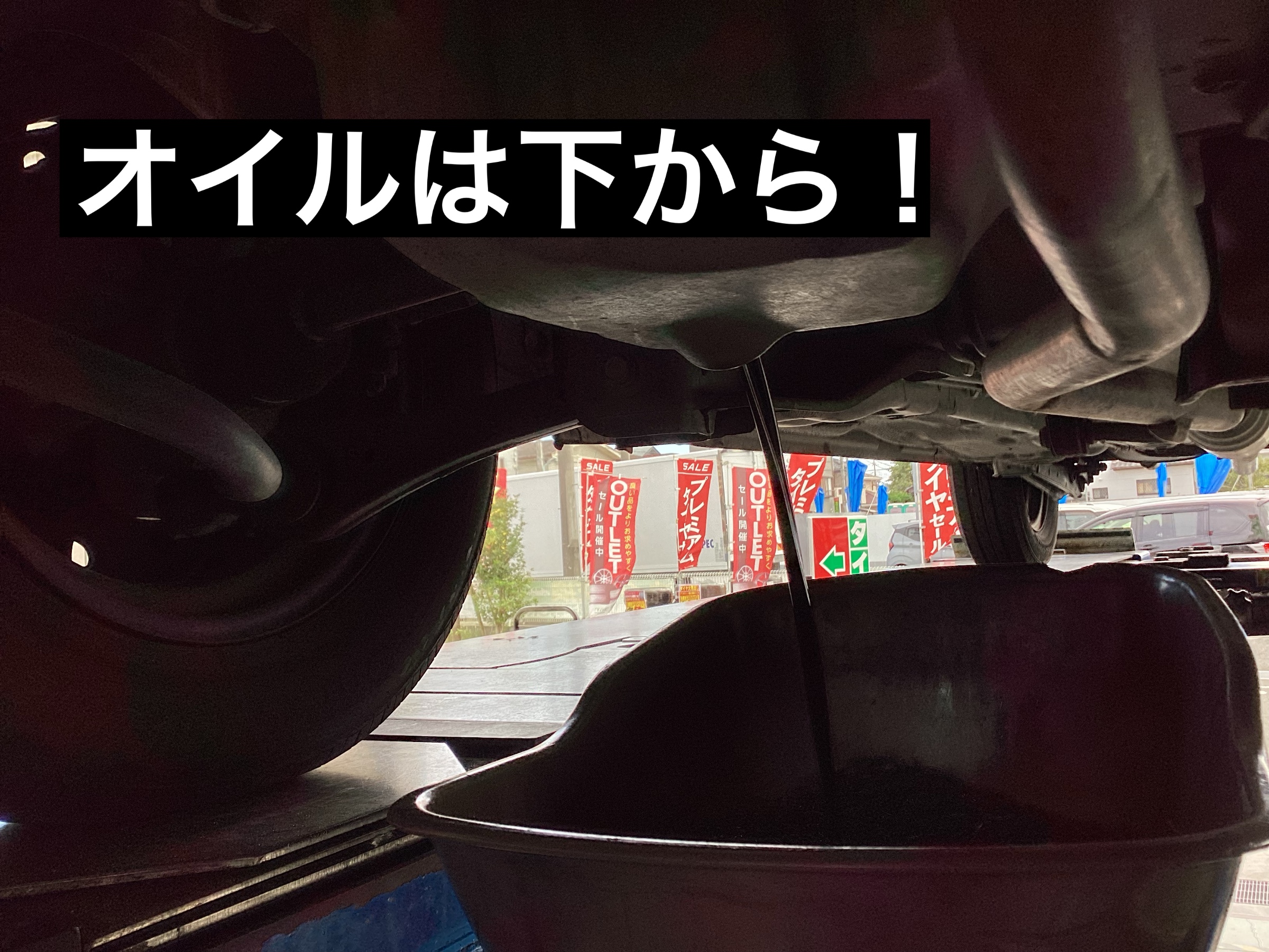 ドレンボルトを外して下からオイル抜きます!