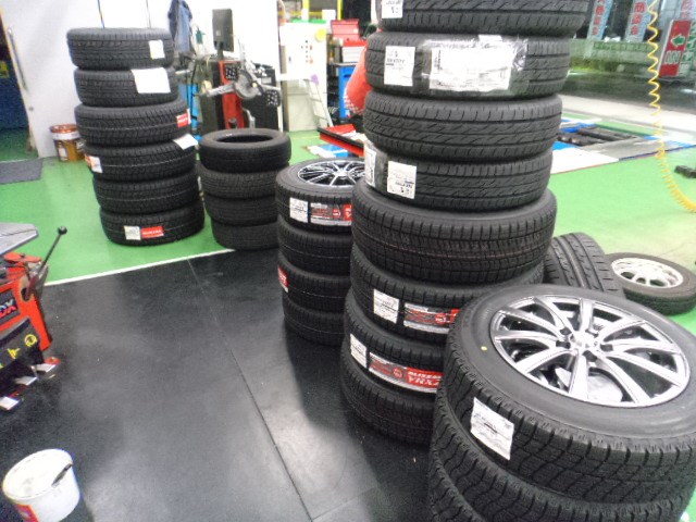 年末年始に向けて、スタッドレスタイヤに履き替えるお客様。
