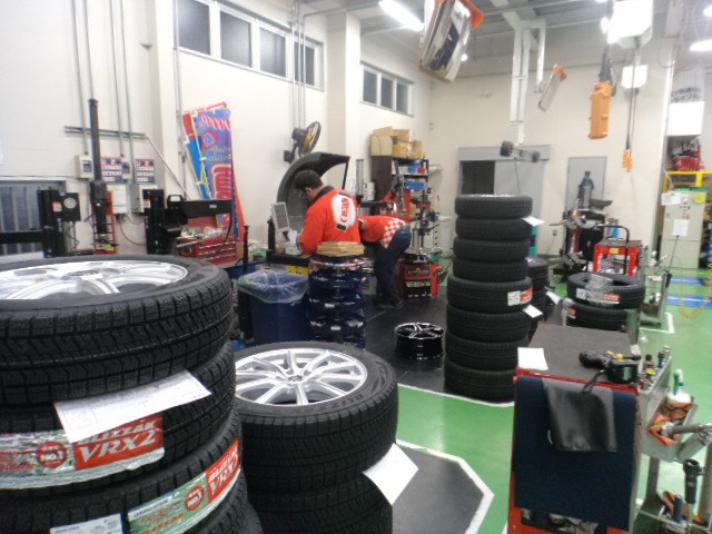 予約を頂いているスタッドレスタイヤの組込をおこなっています。!!