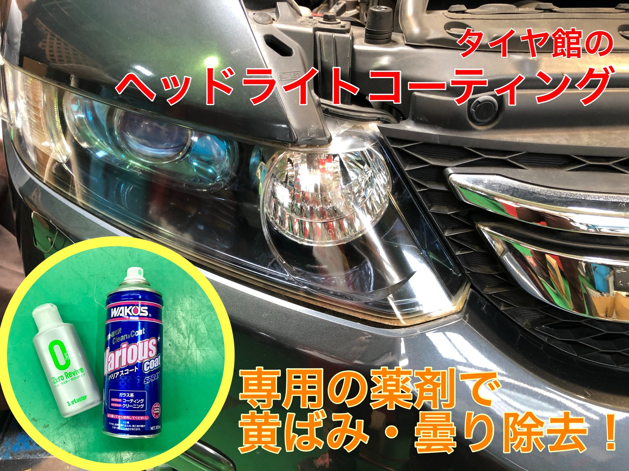 ヘッドライトコーティングは タイヤ館にお任せください!
