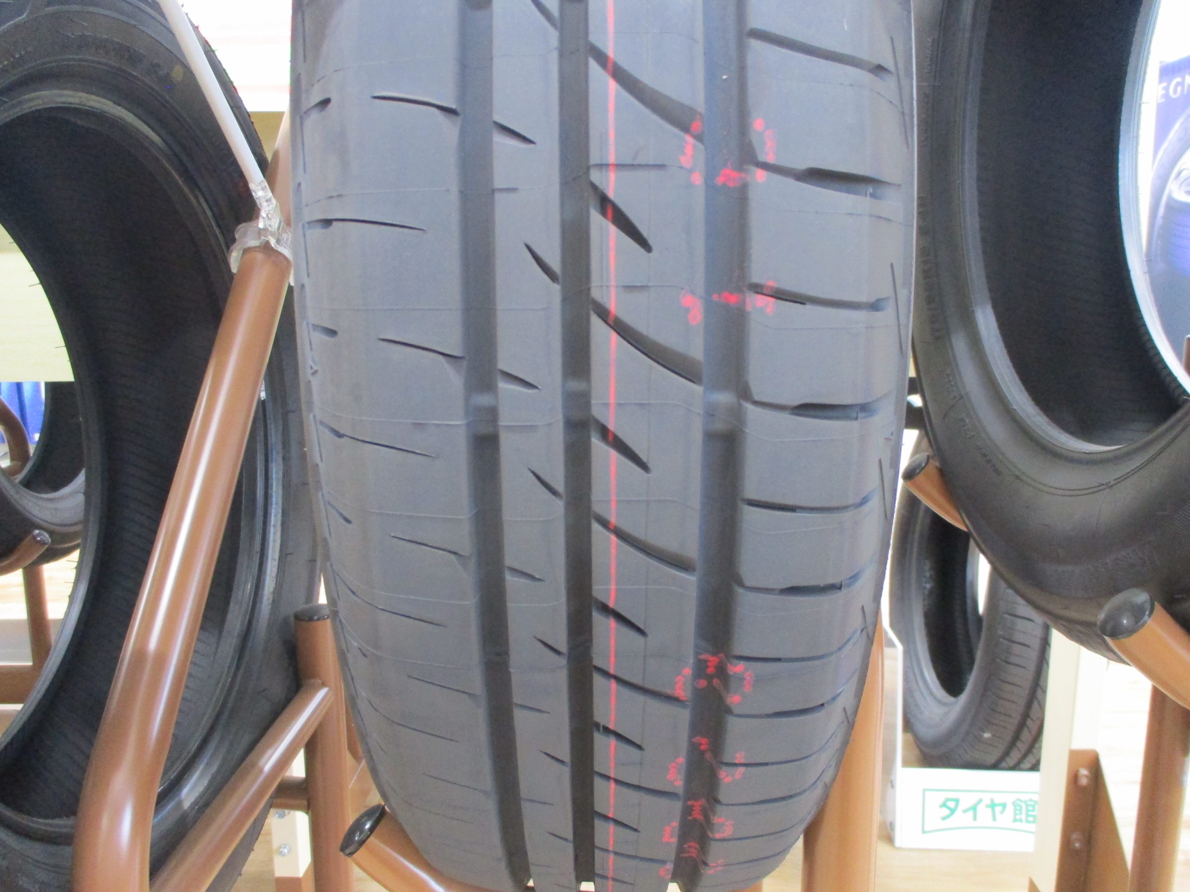 また、従来品に比べ溝が減った状態でも性能が低下しにくくなっており、雨の日の性能が長持ちします!!