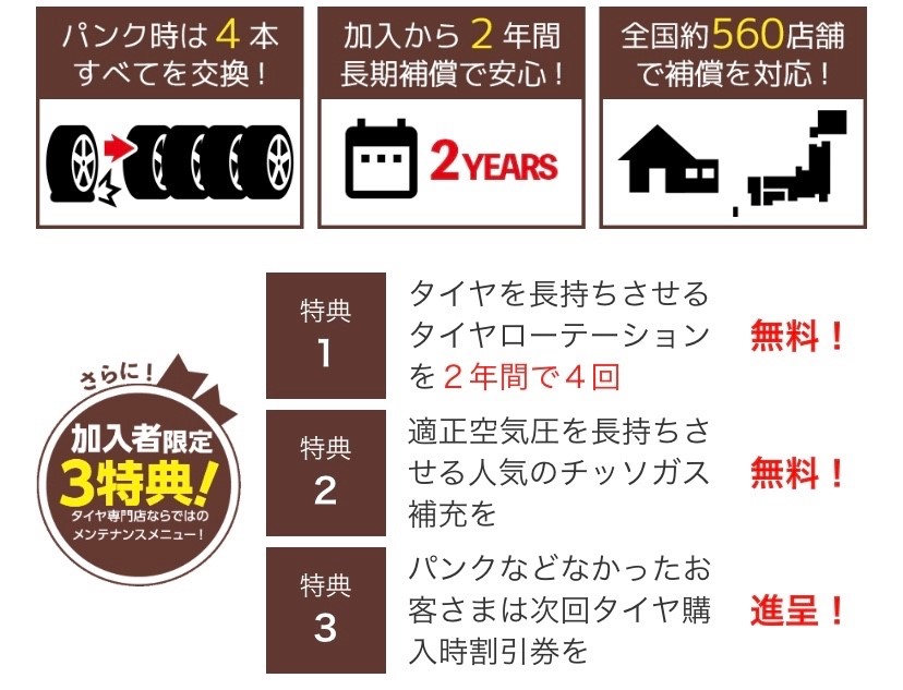 パンク補償サービスに加入していただけます!
