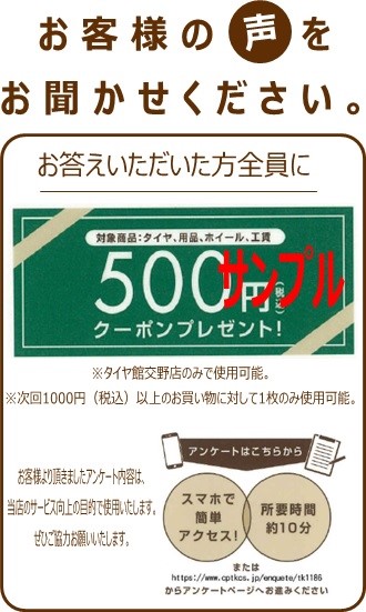 お答え頂いた方には500円引きクーポンをプレゼントしておりますよ!