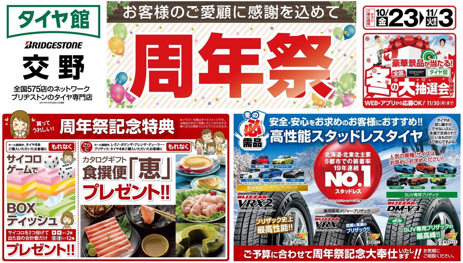 ☆ 10/23~11/3迄は、年に1度の【タイヤ館交野周年祭】開催いたします! ☆