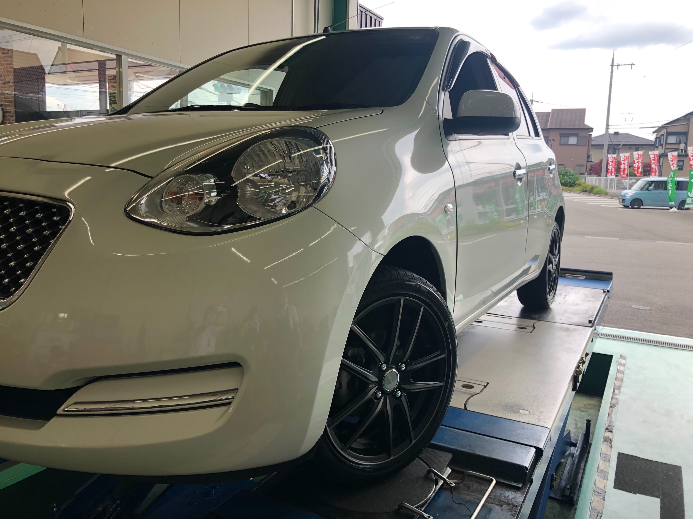 今回は日産マーチ(K13)にタイヤホイールセット取付・アライメント調整をさせて頂きました♪