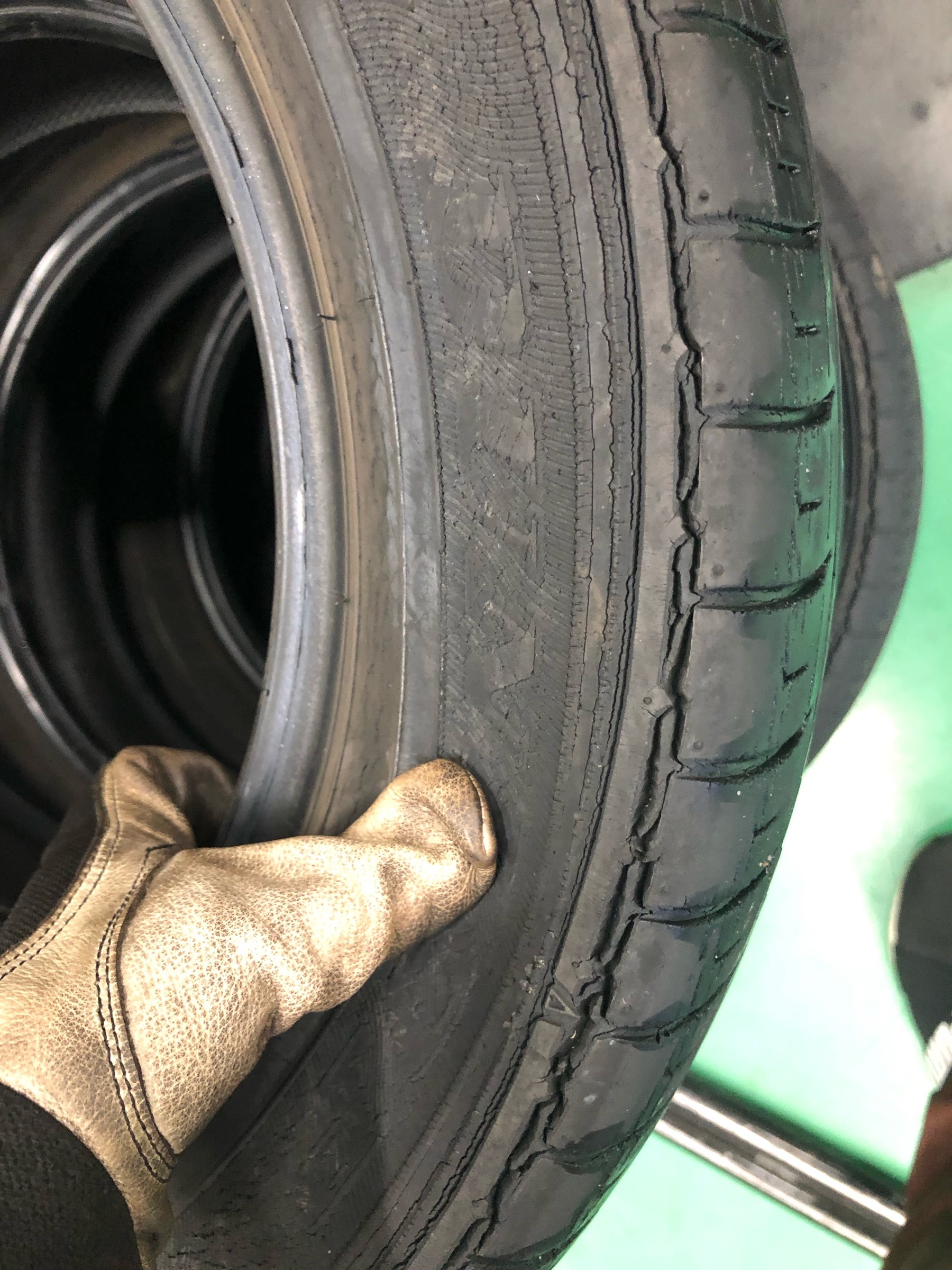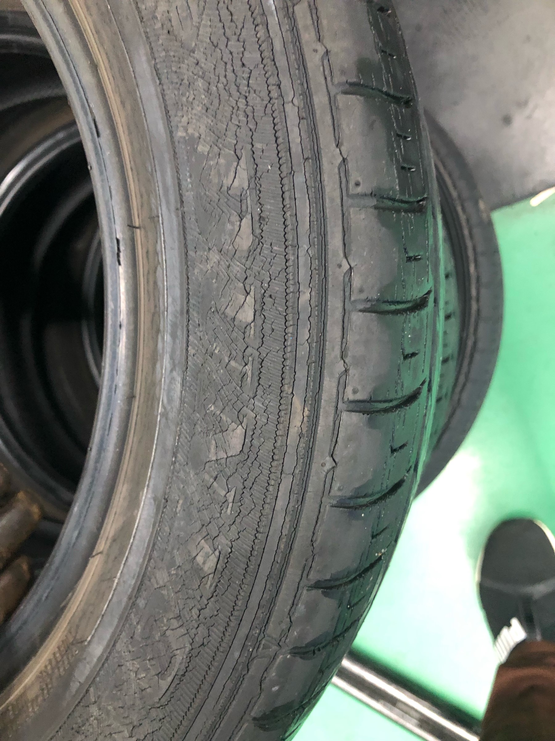 タイヤの横のロゴぐらいのところがヒビヒビ…