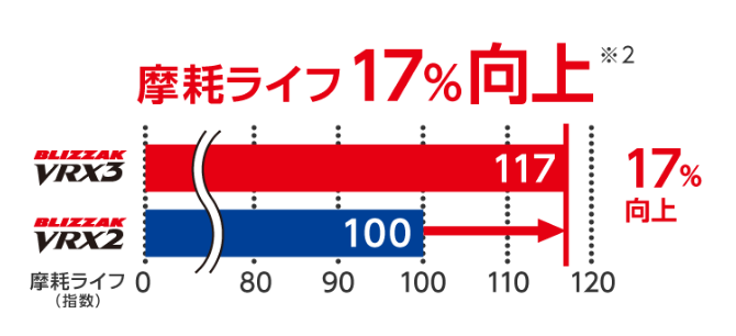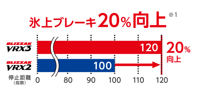 その結果、前モデルVRX2でも大変評判の高かった氷上のブレーキ性能が20%も向上!!!