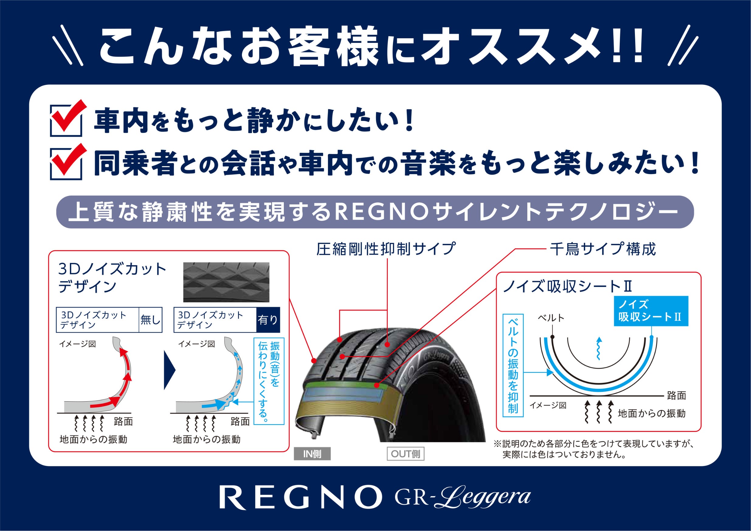 GR–Leggera専用に非対称形状・非対称パタン・高剛性トレッドを採用
