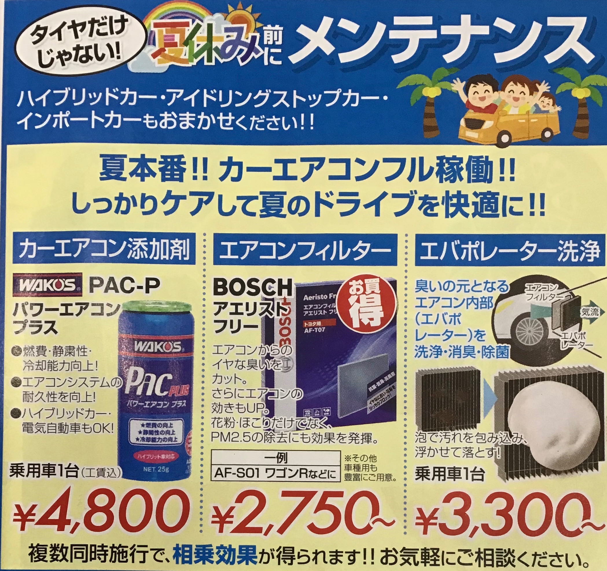 先程ご紹介したパワーエアコンや、エバポレーター洗浄、