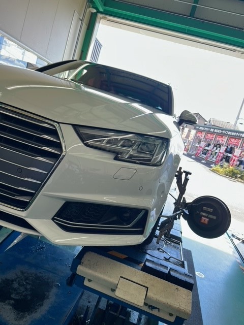 輸入車もお任せください!! アウディ【A4】タイヤ交換&アライメント