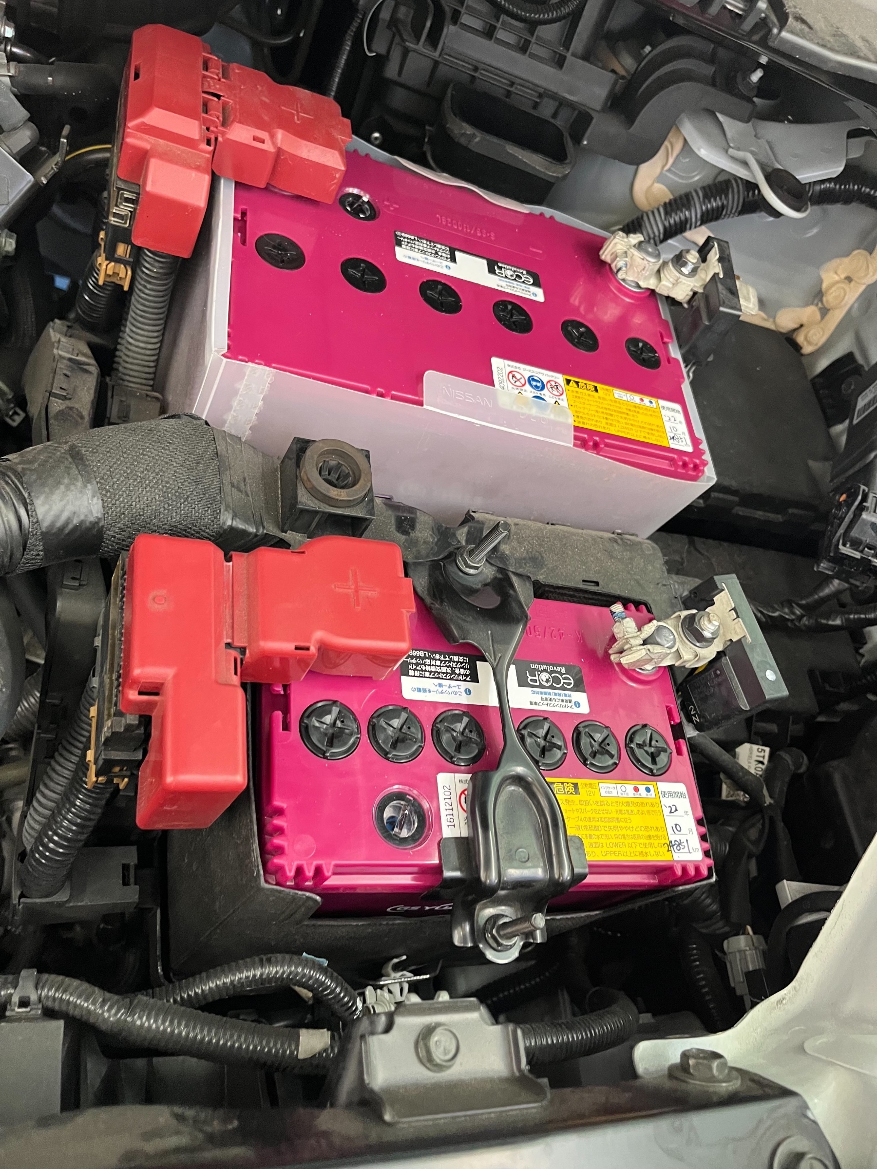 セレナのバッテリーは大きいものと小さいものの2つ付いています。