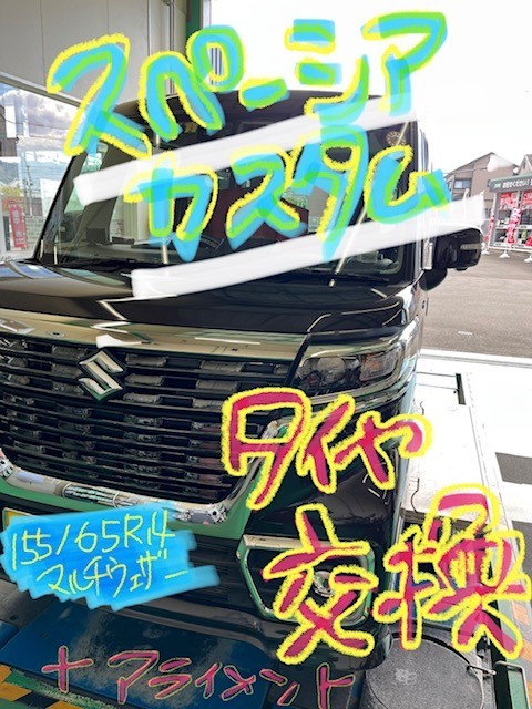 スズキ【スペーシアカスタム】タイヤ交換&アライメント