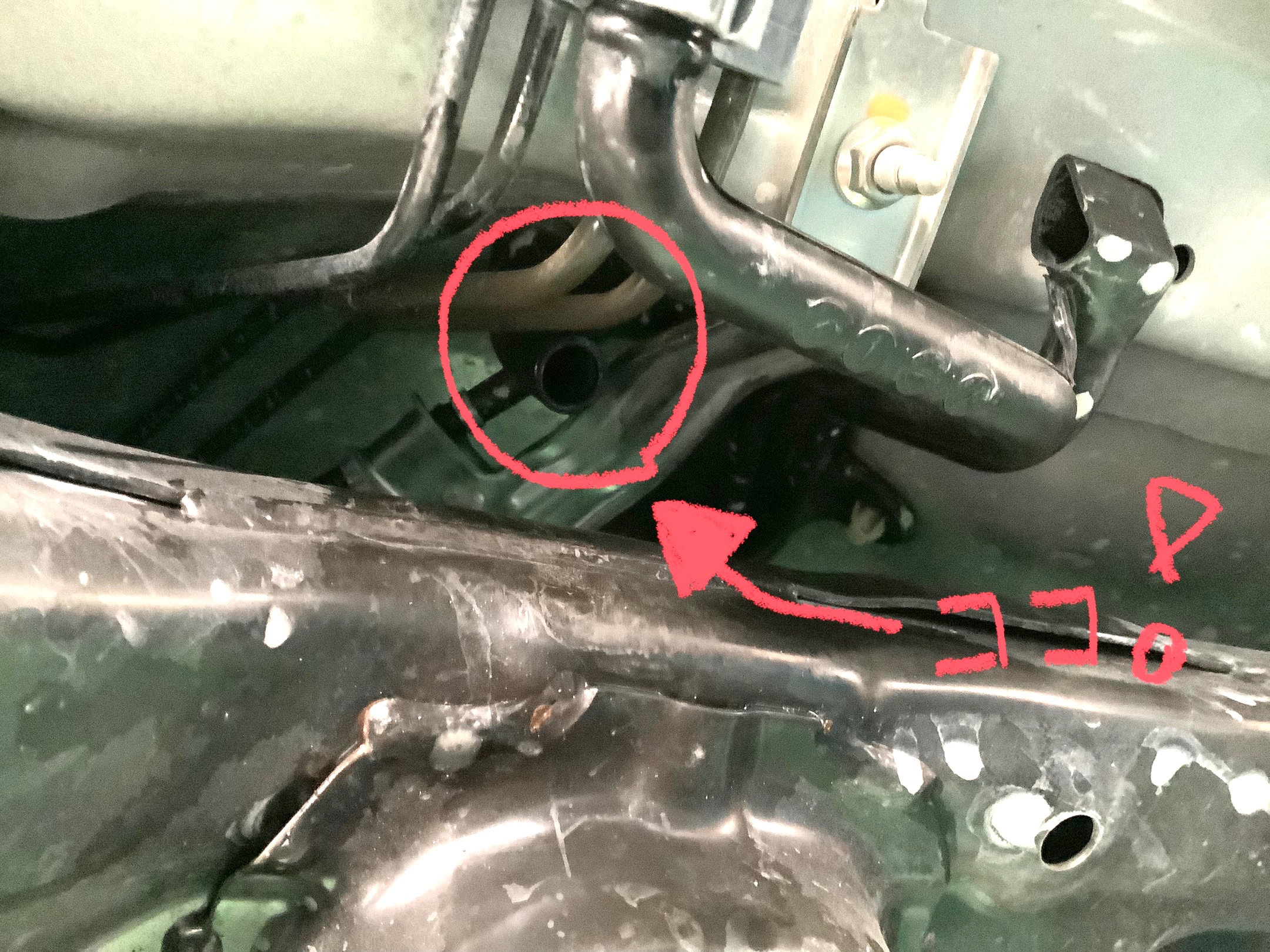 車をリフトで上げて下を覗き込むと…