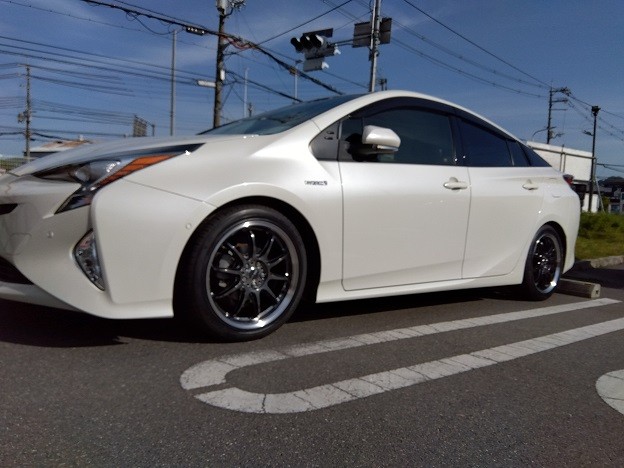 トヨタ プリウスにタイヤ&ホイールとダウンサスの装着です!