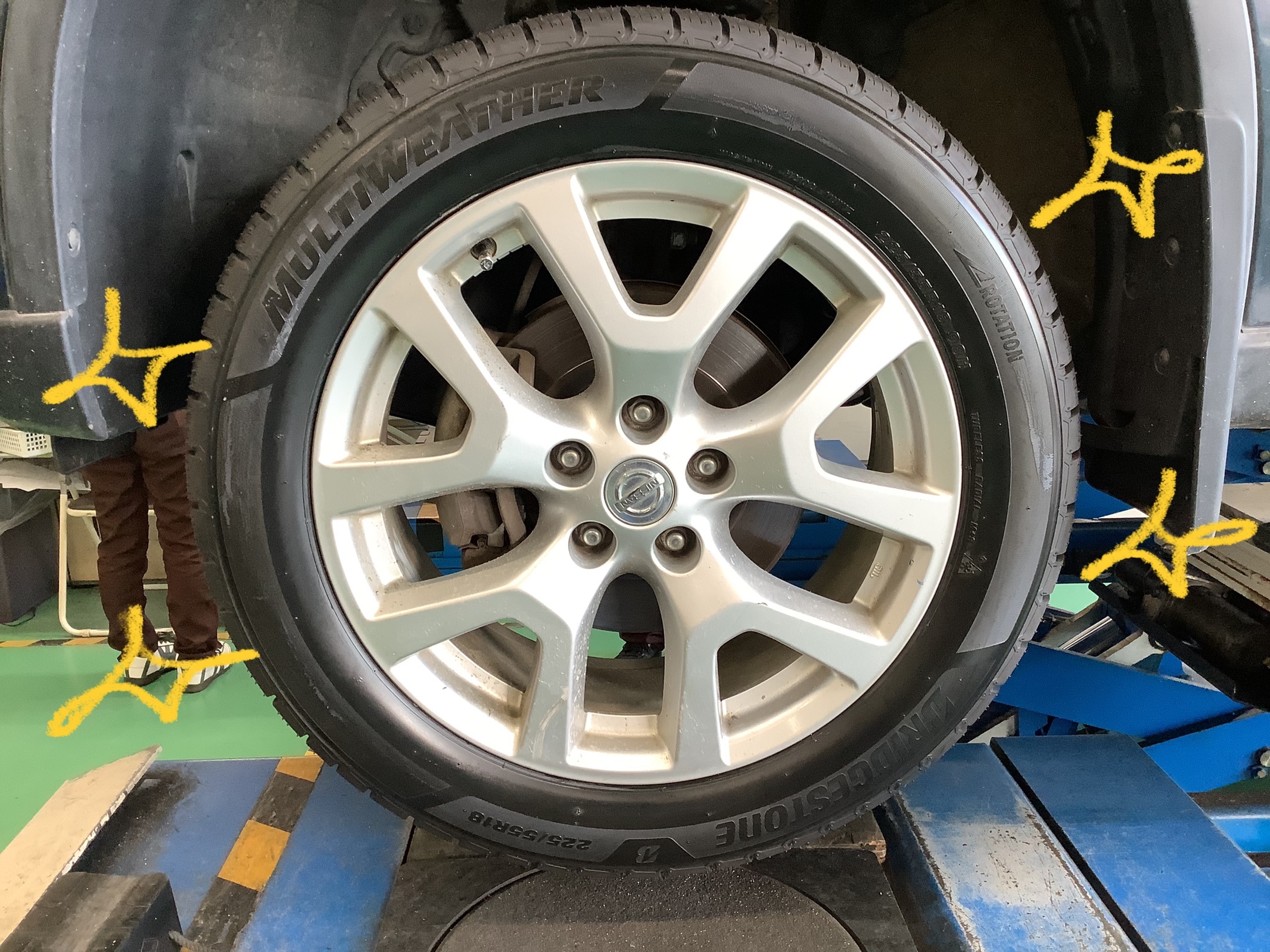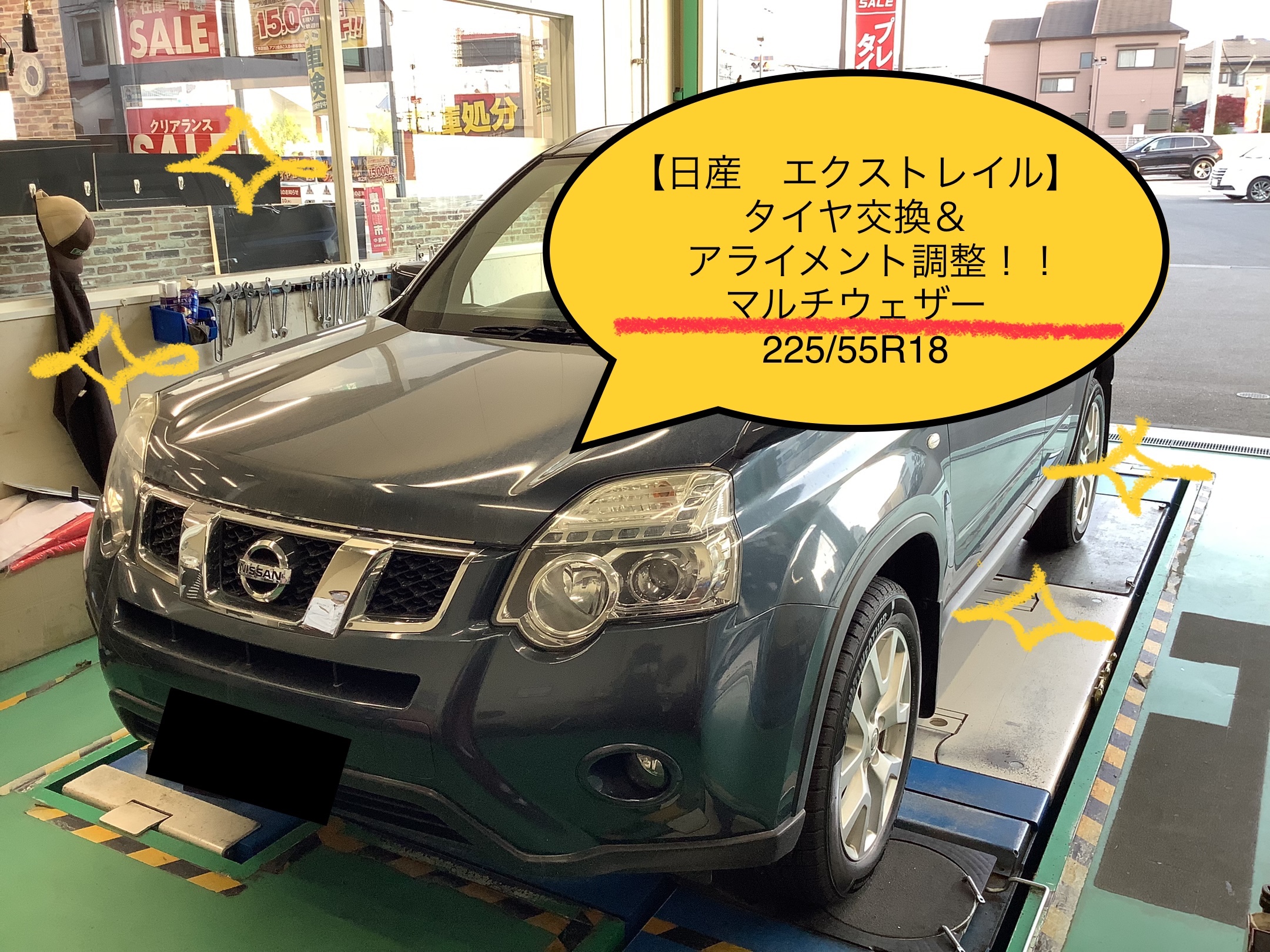 【日産 エクストレイル】タイヤ交換&アライメント!!オールシーズンタイヤ マルチウェザー!! ポスト 2023年4月29日 いつもタイヤ館交野店をご利用頂きありがとうございます!! 今回紹介させて頂くのはコチラ!!! 【日産 エクストレイル】タイヤ交換&アライメント調整です!!! お取り付けさせて頂くタイヤは【マルチウェザー 235/55R18】です!! マルチウェザー (オールシーズンタイヤ)は、 新車装着タイヤと性能がほぼ同じで夏タイヤとしてしっかり走行でき、 尚且つ、いざという時の降雪時でも安心して走行できるタイヤなんです! 1.高い雪上性能で、浅雪レベルであれば問題なく走行可能 (凍結路面はSTL対比性能劣る為走行不可) 2.夏タイヤ同等レベル(弊社EP150対比)のWET・静粛性・ライフ性能 <注意> 氷上性能はスタッドレスと比べて大幅に劣ります。 では作業に入ります!!! まずはタイヤの取り付け部分(ハブ)の錆止め作業をさせて頂きました!! この作業をすることでホイールとの間にサビを挟み込まずに取り付けできる為、 よりしっかりとお取り付けできます!! 今回ももちろん ブリヂストン独自開発技術、特殊な機械を使い タイヤを車軸のど真ん中に取り付けて振動を軽減させる 「センターフィット」取り付けさせていただきました!! そしてワックス仕上げして… ピカピカです!!! お次はアライメント調整です!! アライメント調整をすることで、 アライメントのズレから生じる偏摩耗を防ぎ、タイヤの長持ちにつながり、 より安心安全にお車をお乗り頂けるようになります!!! ※アライメント調整について詳しくはコチラ!! →アライメント紹介!!しないとどうなるの?? 当店ではこのようにお客様のより快適なカーライフのお手伝いをさせて頂いています!!! 取り付け後ももちろん、空気圧の点検やタイヤの点検を実施しており、 タイヤのアフターケアもしっかりとさせて頂いています!!! 「車を買ってからタイヤ変えてないけど大丈夫かな…」 「タイヤってどこで買えばいいのかな…」 とお悩みのお客様!!! 是非一度タイヤ館交野店にご来店ください!!! タイヤ選びから購入後のアフターケアまでしっかりとタイヤのプロがお手伝いします!! 皆様のご来店お待ちしております!!! 【地域密着!応援セール】&【プレミアムセール】開催!! お手頃タイヤはもちろん! 性能重視の方も!! 夏タイヤはもちろん! 来年に備えた冬タイヤも!是非ご相談ください♪ スタッドレスタイヤはサイズによっては すでにご用意が困難なタイヤが発生しております! 全力で手配させていただきますが 万が一!万が一ご希望に沿えなかった場合は ご了承いただければ幸いです。 2023年2月より発売になる NEWNOもぜひご検討ください☆ 詳しくはこちらをクリック→NEWNO タイヤは勿論、 カーメンテナンス商品 オイル・バッテリー・ワイパー・エアコンフィルター等々 カー用品 アルミホイール・ドライブレコーダー・LEDバルブ・車高調・ダウンサス等々 お出かけ前のメンテナンスは是非、当店にお任せ下さい! タイヤ館交野店は、交野市星田北5丁目の、 ネッツトヨタさん日産さんホンダさんスズキさんと言った カーディーラ通りの近くでカインズフレンドタウン交野さんも近くにあります。 フレンドタウン交野さんのお近くを通られた際は、お気軽にお立ち寄りください。 電話番号はこちら⇒072-896-5052 タイヤ交換のご依頼は、お近くの交野市は勿論、枚方市、寝屋川市、四条畷市、大東、守口、門真、茨木・高槻・東大阪・摂津、 八幡・京田辺・木津・奈良・生駒・等も アクセス良くご利用しやすいですよ!その他の市からも、ご来店大歓迎です♪お見積りも無料でさせて頂いていますので是非ご利用下さい\(^o^)/ 新品タイヤへの交換はネット予約にて、タイヤ購入相談予約もできますので是非、お気軽にご利用下さい!皆さまのご来店心よりお待ちしております!! 当店のWEBメール相談窓口はこちらをクリックしてください。 【mobox(モボックス)】 月々定額料金にて購入負担を軽減!購入後のメンテナンスもお任せ下さい!月々の価格も分かり易い! タイヤのサブスク【mobox専用サイトはこちらから】←クリック 新品タイヤへの交換はネット予約にて、タイヤ購入予約もできますので是非、お気軽にご利用下さい! デイトン購入はこちら専用サイトからご利用頂けますよ♪ ↓↓↓ ↓↓↓ ↓↓↓ ↓↓↓ ↓↓↓ デイトン購入【タイヤ館 ECサイトはこちらから】←クリック デイトン購入【Amazon ECサイトはこちらから】←クリック デイトン購入【Yahoo! PayPayモール ECサイトはこちらから】←クリック クリック⇒【タイヤ館交野店タイヤ相談予約はこちらから】 今お使いのタイヤが交換時期かどうかわからない方は、 こちらのAI画像診断アプリにてスマートフォンから確認することもできますよ♪ クリック⇒【タイヤ診断はこちらから】 ~お客様からの評価・お声を是非投稿して下さい\(^o^)/~ タイヤ館交野店⇒口コミはこちらからクリック タイヤ館交野店取り扱いタイヤ交換/スタッドレスタイヤ/