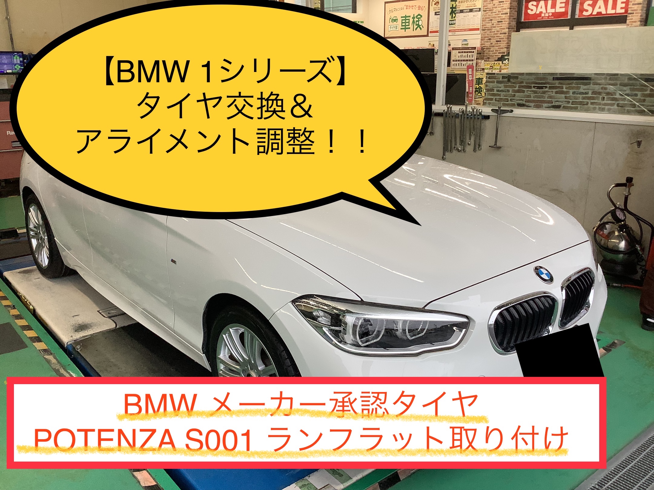 【BMW 1シリーズ】タイヤ交換&アライメント調整!! メーカー承認タイヤPOTENZA S001取り付け!!