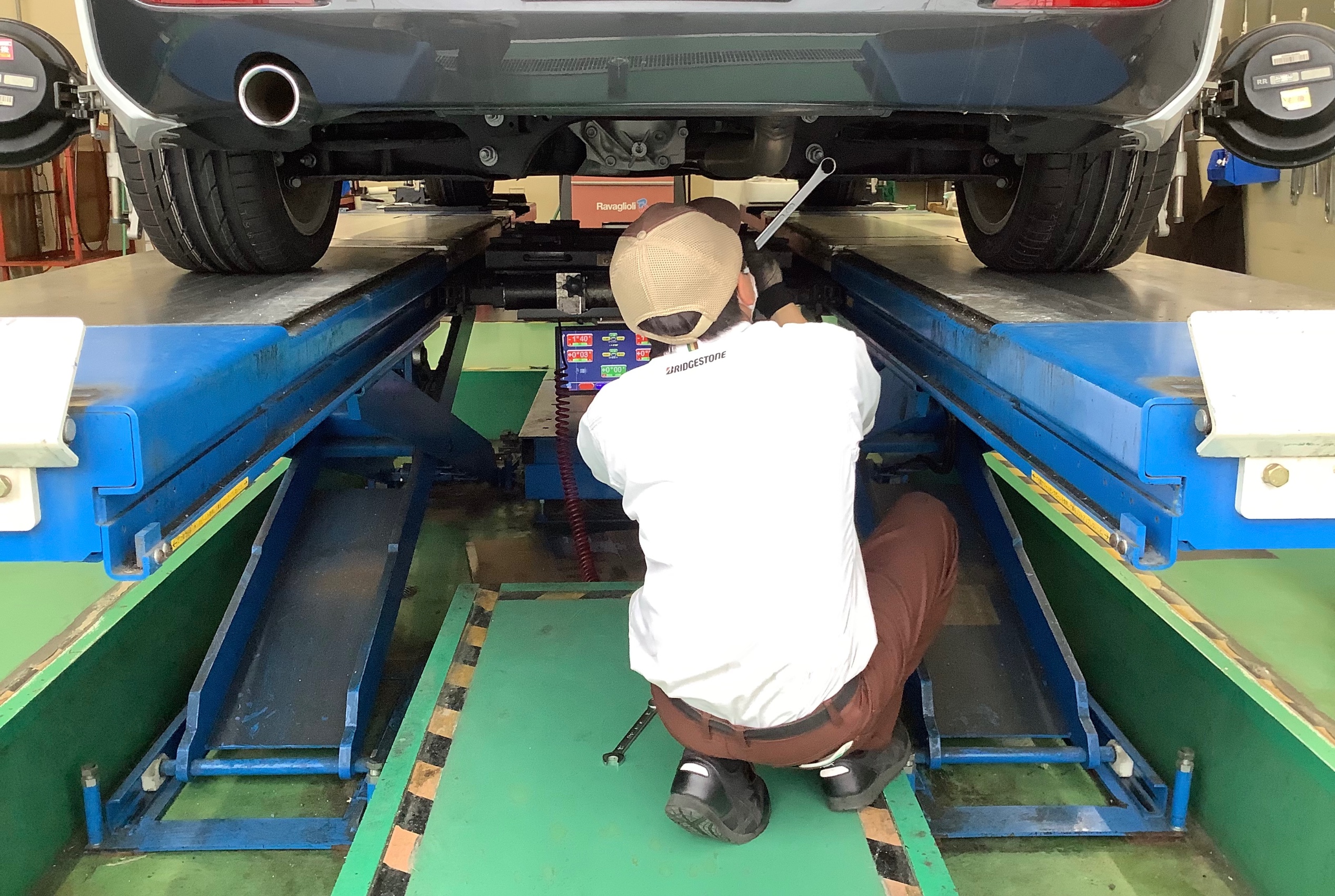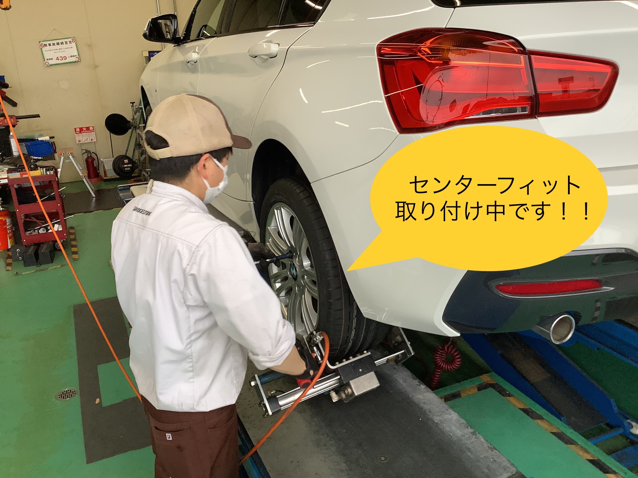 しっかりとお車の適正な位置に調整していきます!!