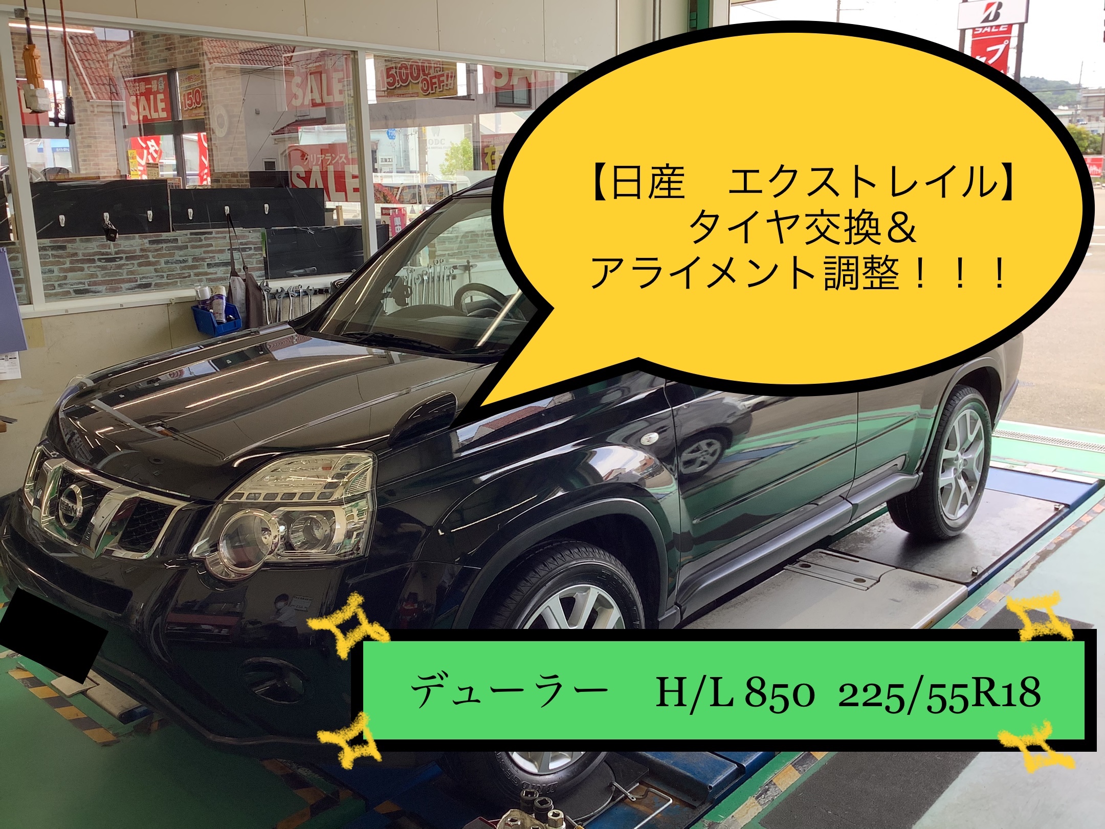 【日産 エクストレイル】タイヤ交換&アライメント調整!!! デューラーH/L 850取り付け!!