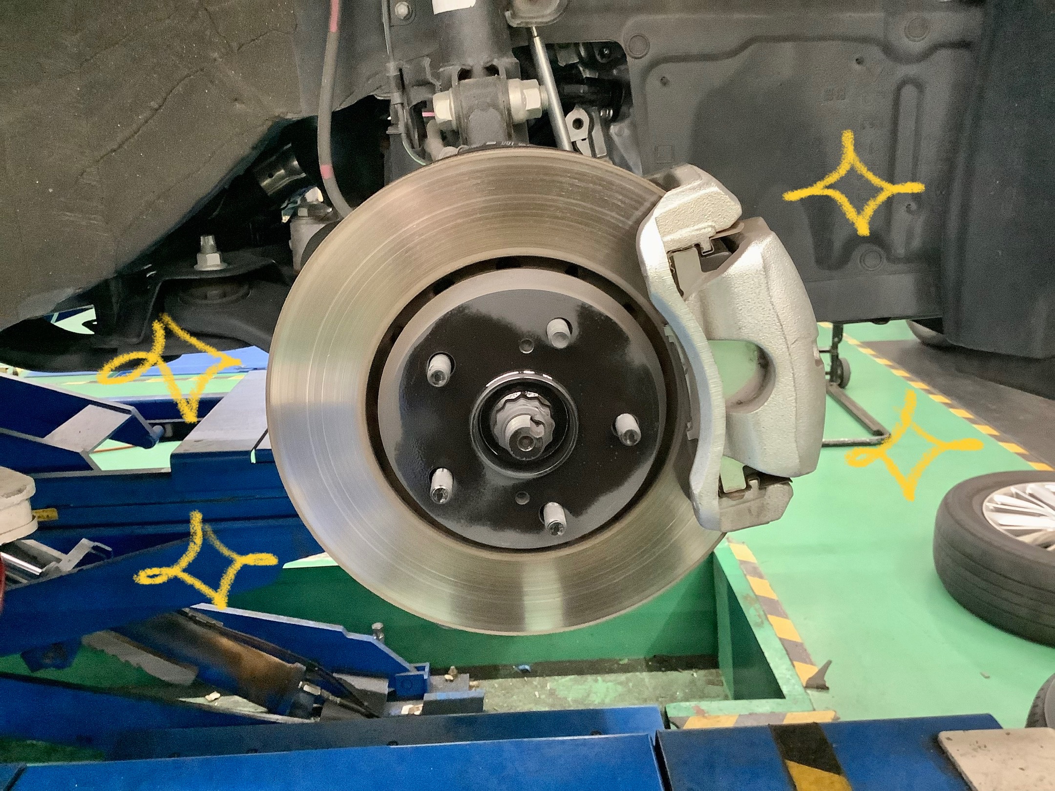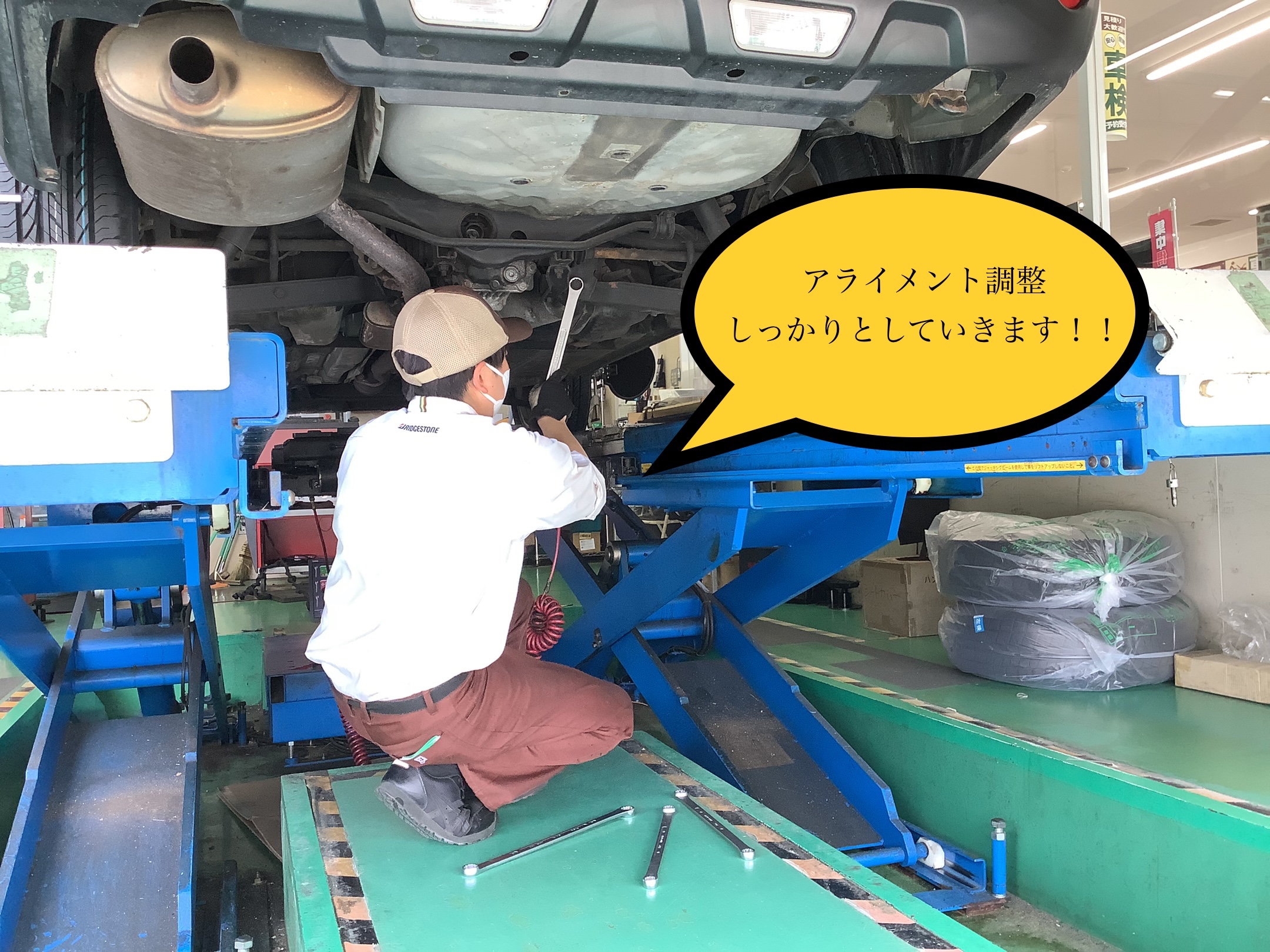 しっかりとお車の適正な位置に調整していきます!!