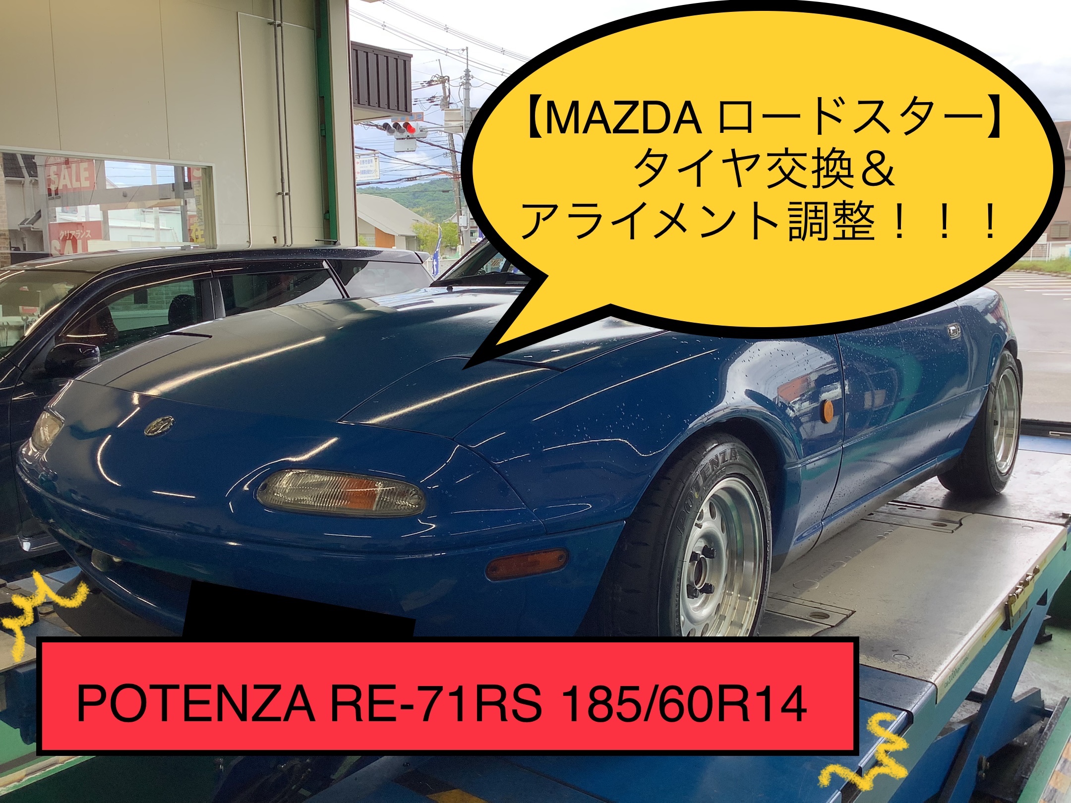 【マツダ ロードスター】タイヤ交換&アライメント調整!! POTENZA RE-71RS 185/60R14!!!