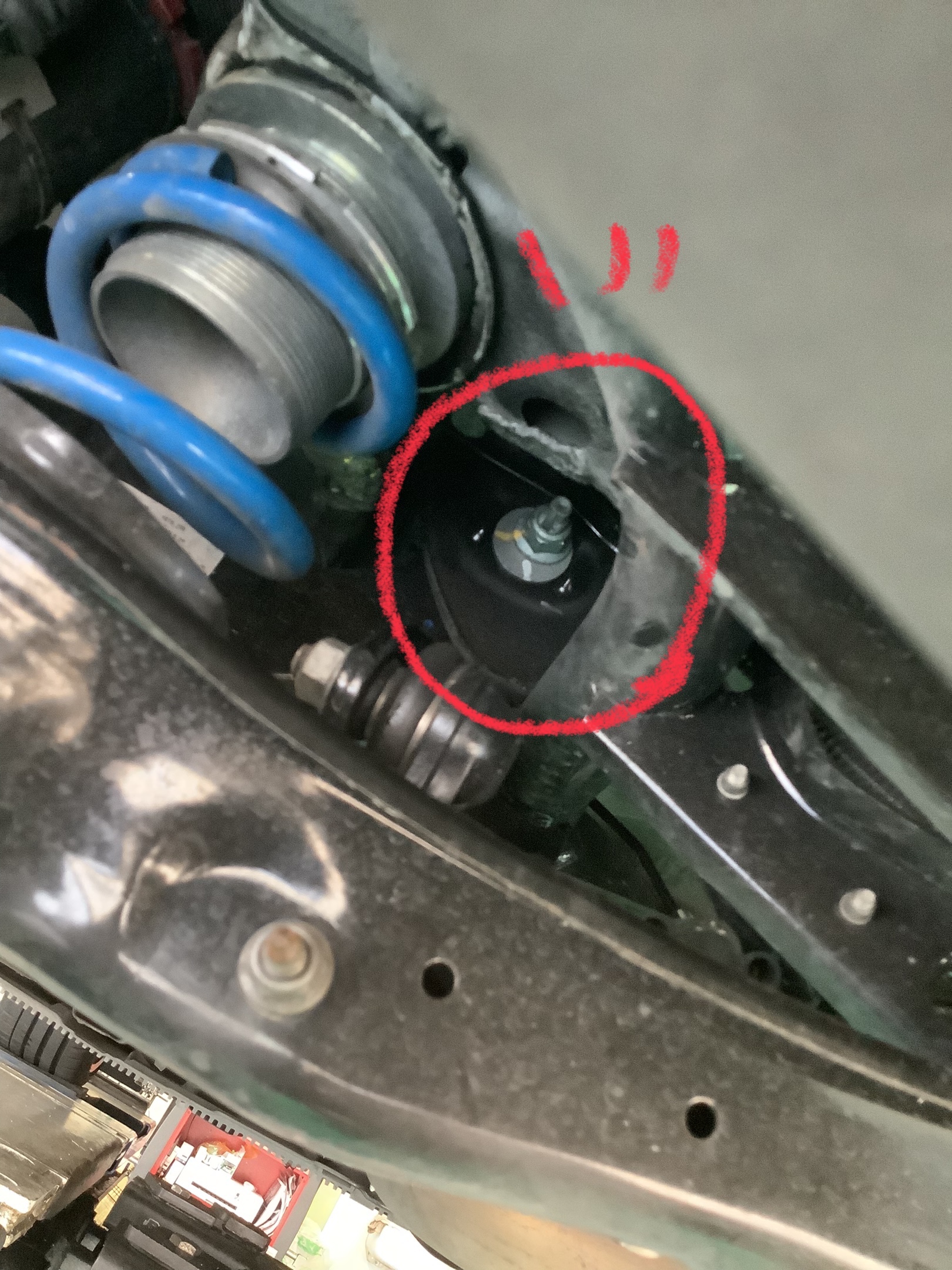 この2箇所のボルトを緩めることでリアのトー、キャンバー調整が可能になります!!