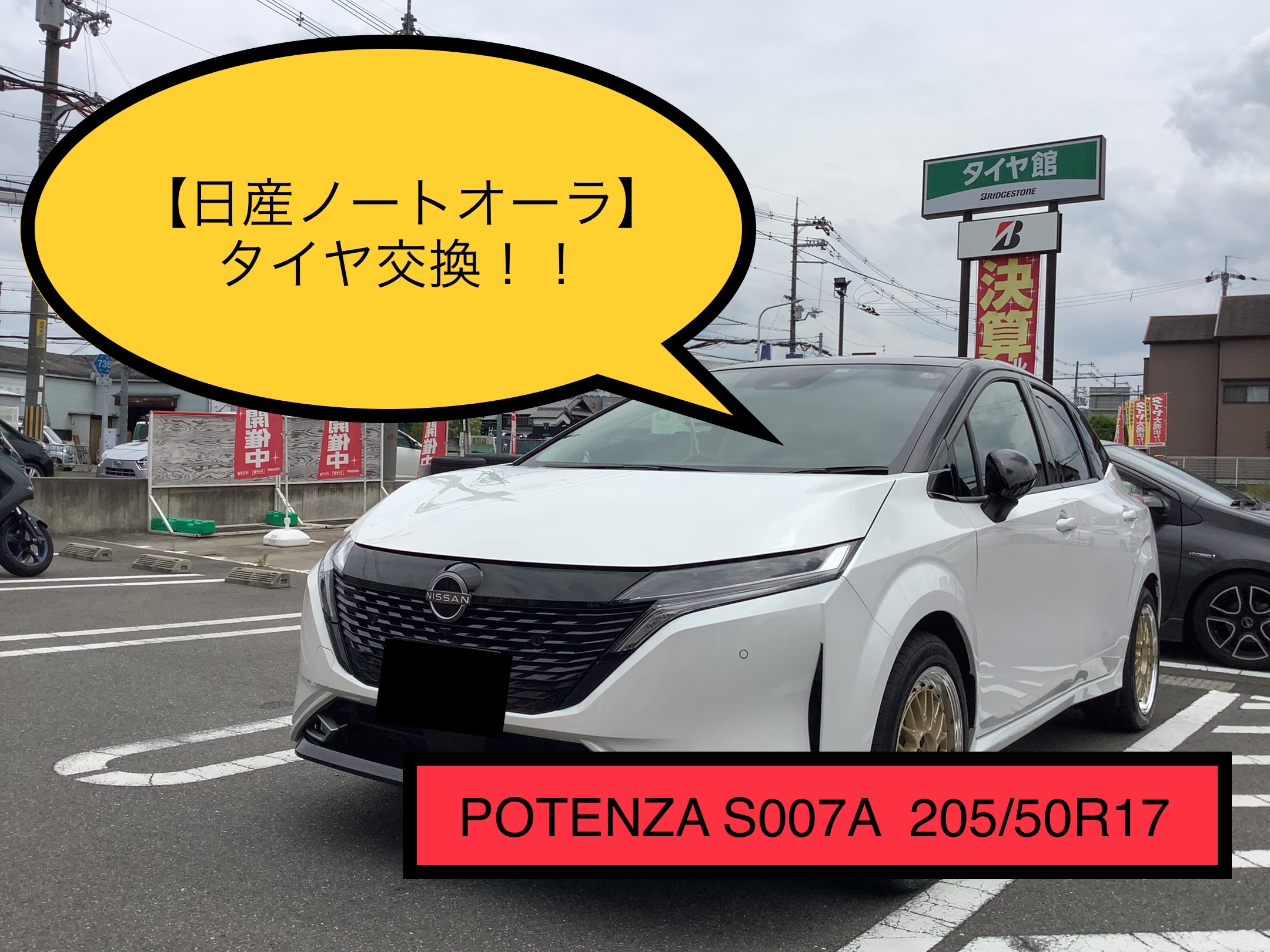 【日産 ノートオーラ】タイヤ交換!! POTENZA S007A 205/50R17!!
