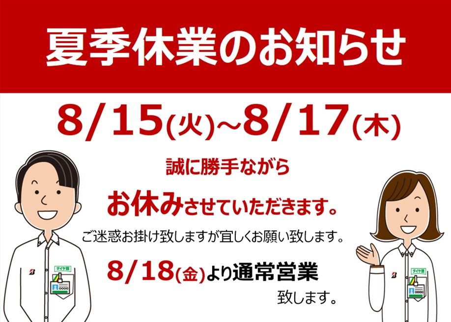 8/15(火)~8/17(木) 臨時休業 水曜日もメール相談・WEB予約受付中★☆
