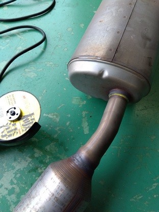 接合部分は予め用意していたアルミテープとマフラーパテをつけて