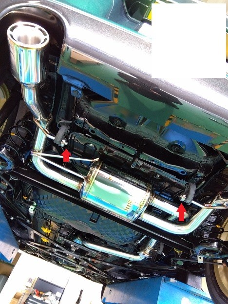 では、早速交換です。アンダーブレース装着車でしたがスムーズに交換完了です(^^♪