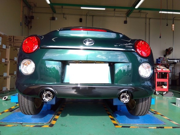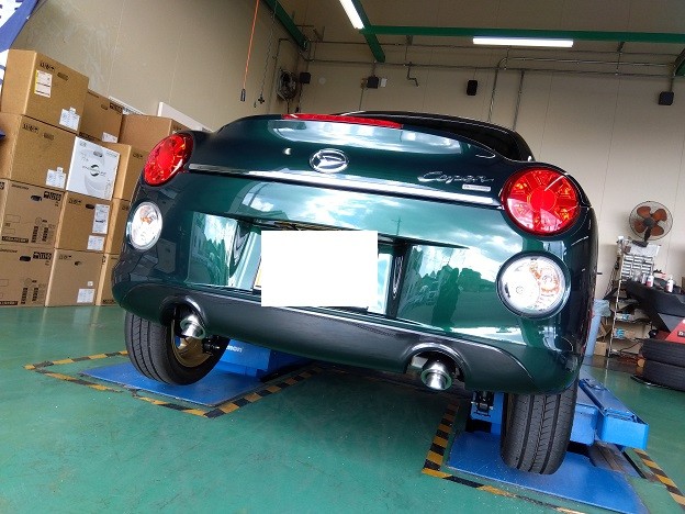 1/5のスタッフ日記にて紹介させて頂いた【ダイハツ コペン】のマフラー交換 です!!